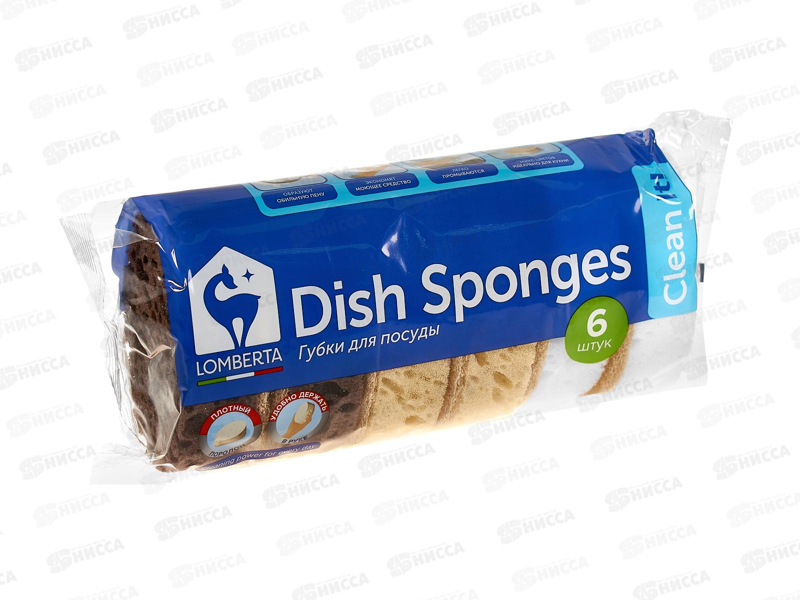 Губки кухонные Lomberta Полибег 6шт овальные крупнопористые *36
