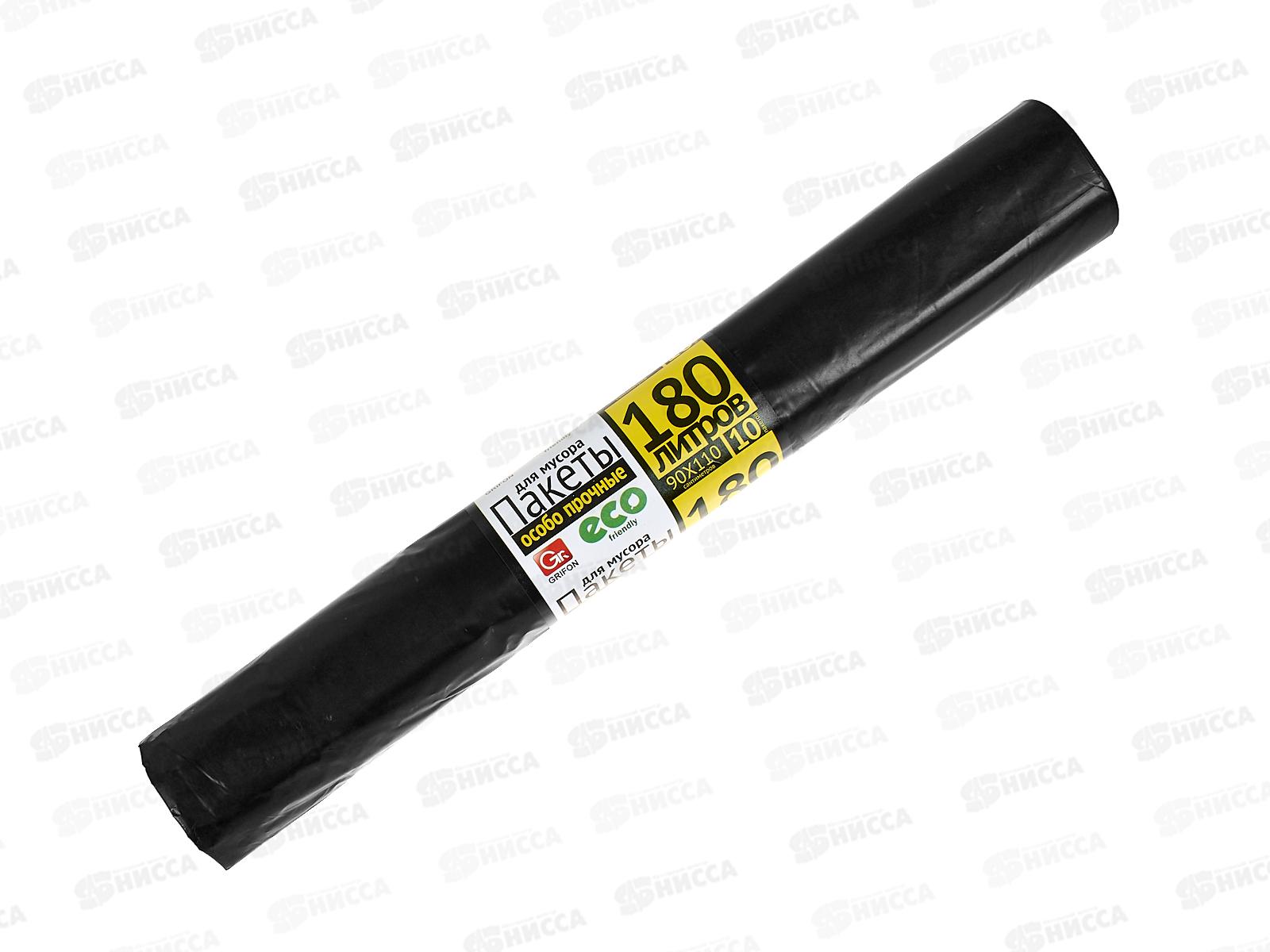 Мешки для мусора GRIFON 180литров ПВД 10шт черный рулон. 40мкр *12 101-036