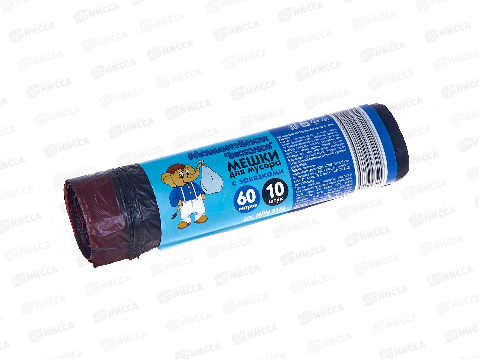 Мешки для мусора 60л 10шт "Мамонтенок" с завязками 13мкм *35