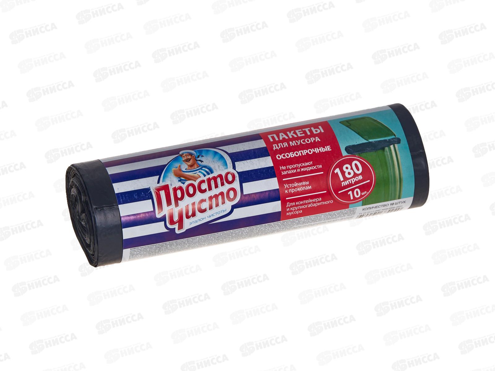 ПРОСТО ЧИСТО пакеты для мусора особопрочные 180л 10шт 28мк *10