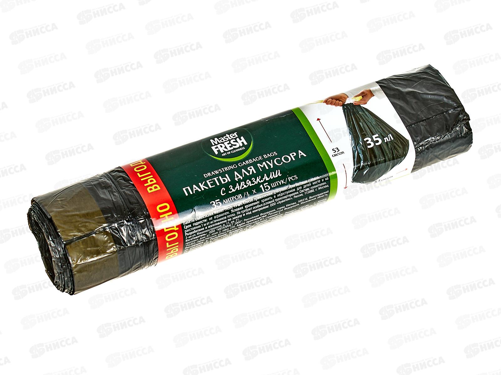 Master FRESH мешки для мусора 35л 15шт с завязками черные *50 С0006419