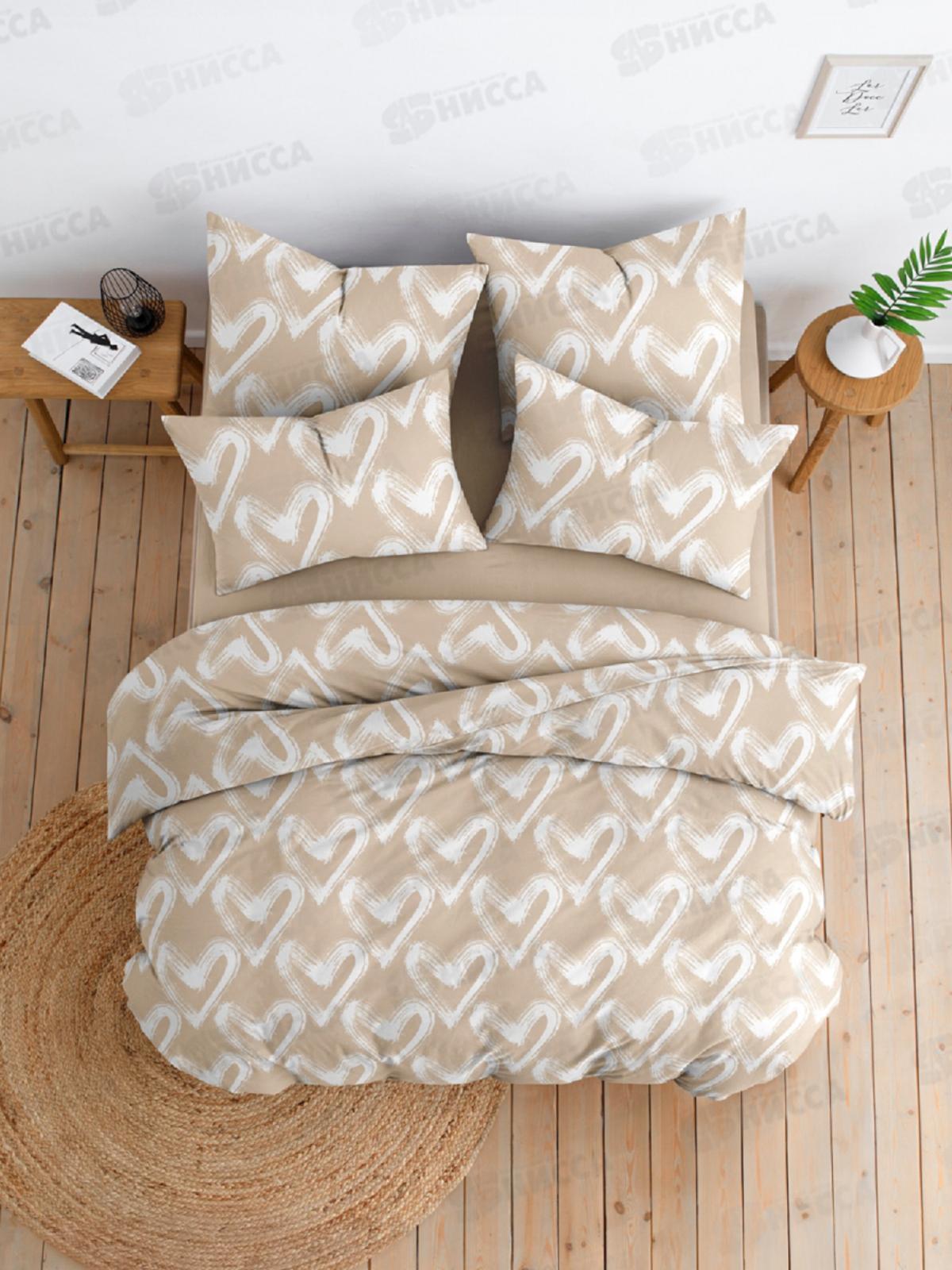 Комплект постельного белья 1,5 спальный Бязь 120гр НН Dark Love бежевый 70*70 2шт
