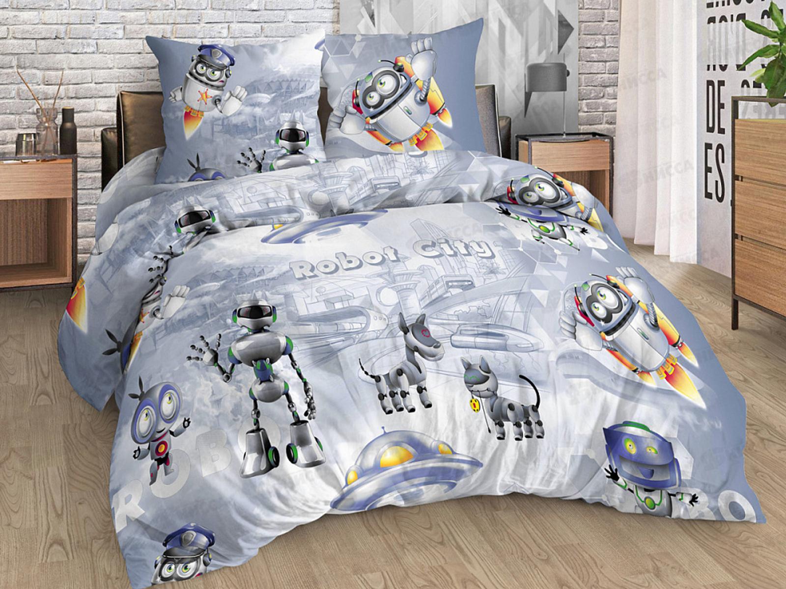 Комплект постельного белья 1.5спальный 215*150 бязь наб,пл125 Город роботов 1наволочка 70*70