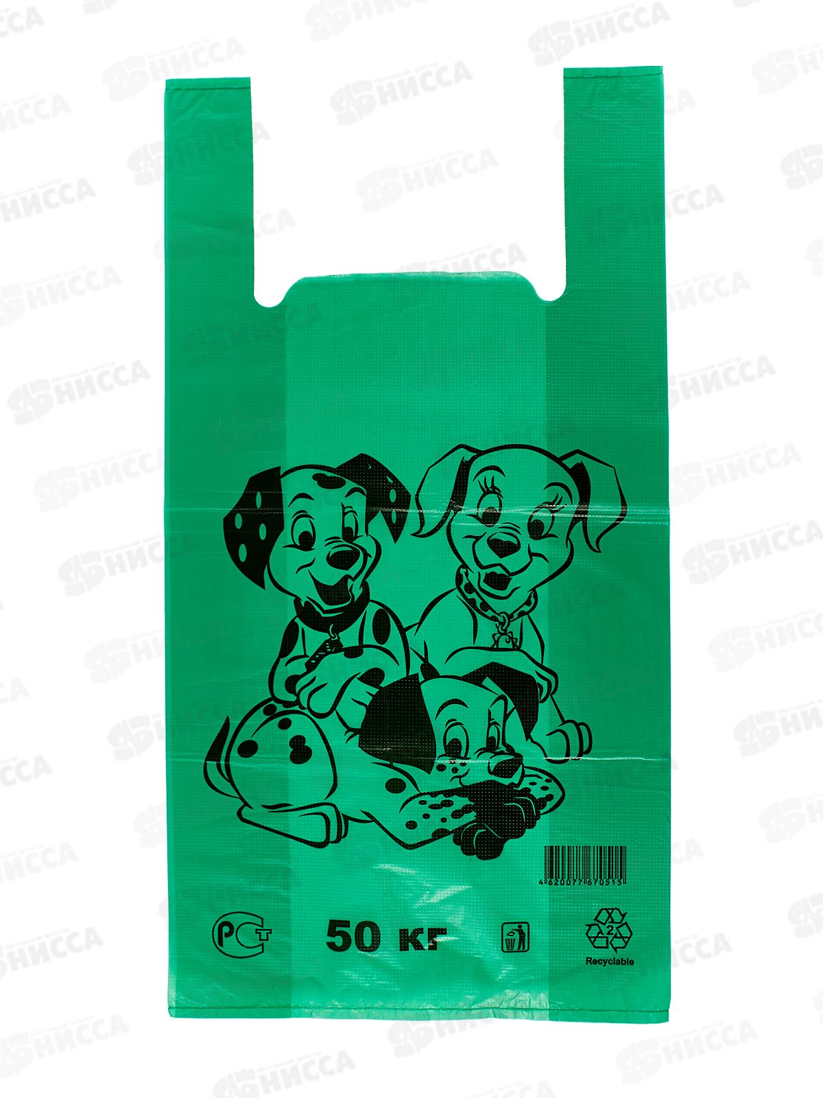Пакет - майка зеленый с дизайном "Далматины", 30х55 см. Самым популярным видом Пакетов среди покупателей являются Пакеты-майки. Они очень вместительны благодаря своей конструкции и наличию боковых складок, поэтому они используются для хранения и транспортировки любых товаров, в том числе и продуктов питания. Имеют удобные ручки, устойчивы к растяжению.