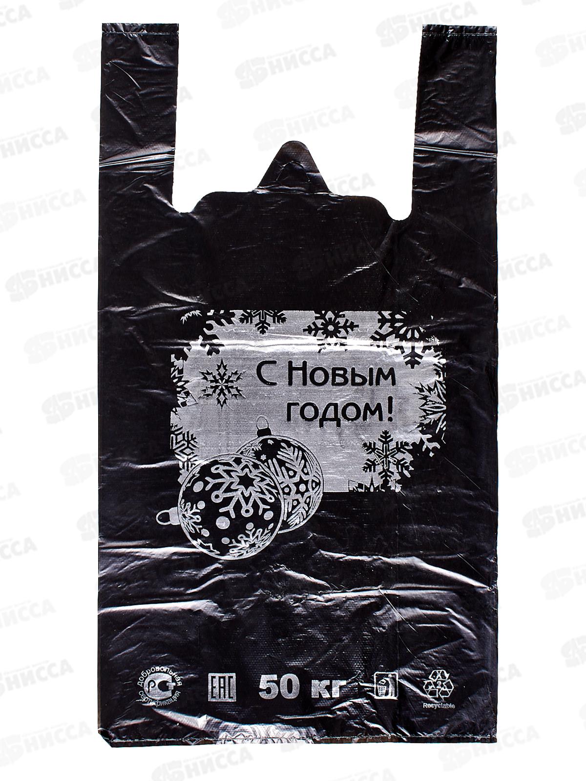 Пакет майка ПНД 30*55 С Новым годом Шары черный *50/1000