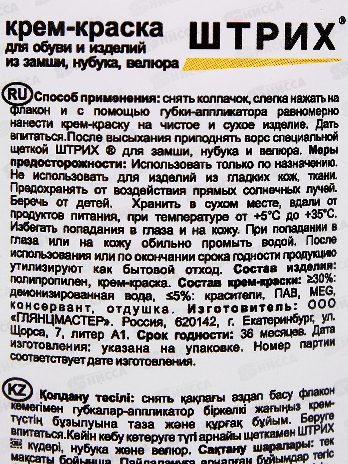 Крем-краска ШТРИХ Экспресс 75мл для замши, нубука, велюра, черный *6/24
