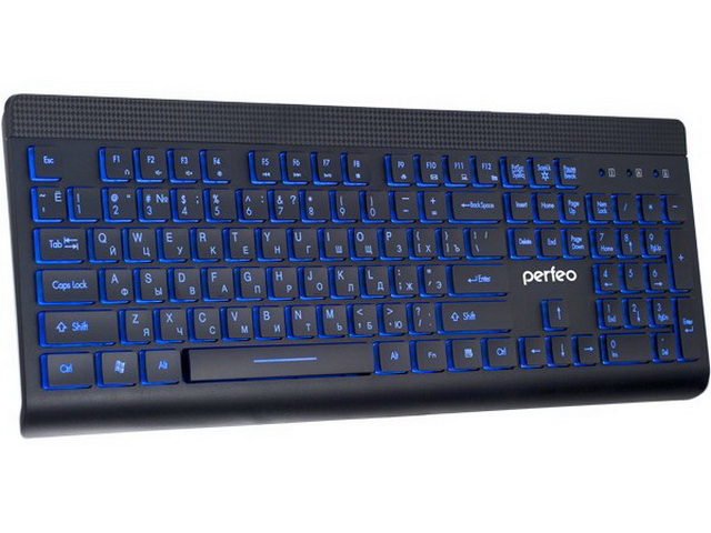 Клавиатура проводная Perfeo BACKLIGHT Multimedia, с подсветкой кнопок/букв, USB, чёрная, PF_5138
