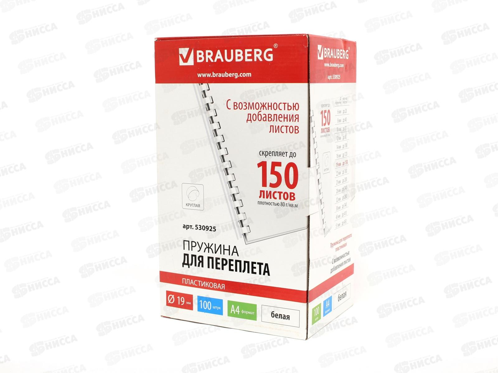 Пружина пластиковая для переплета BRAU 19мм белые, 100шт, 530925
