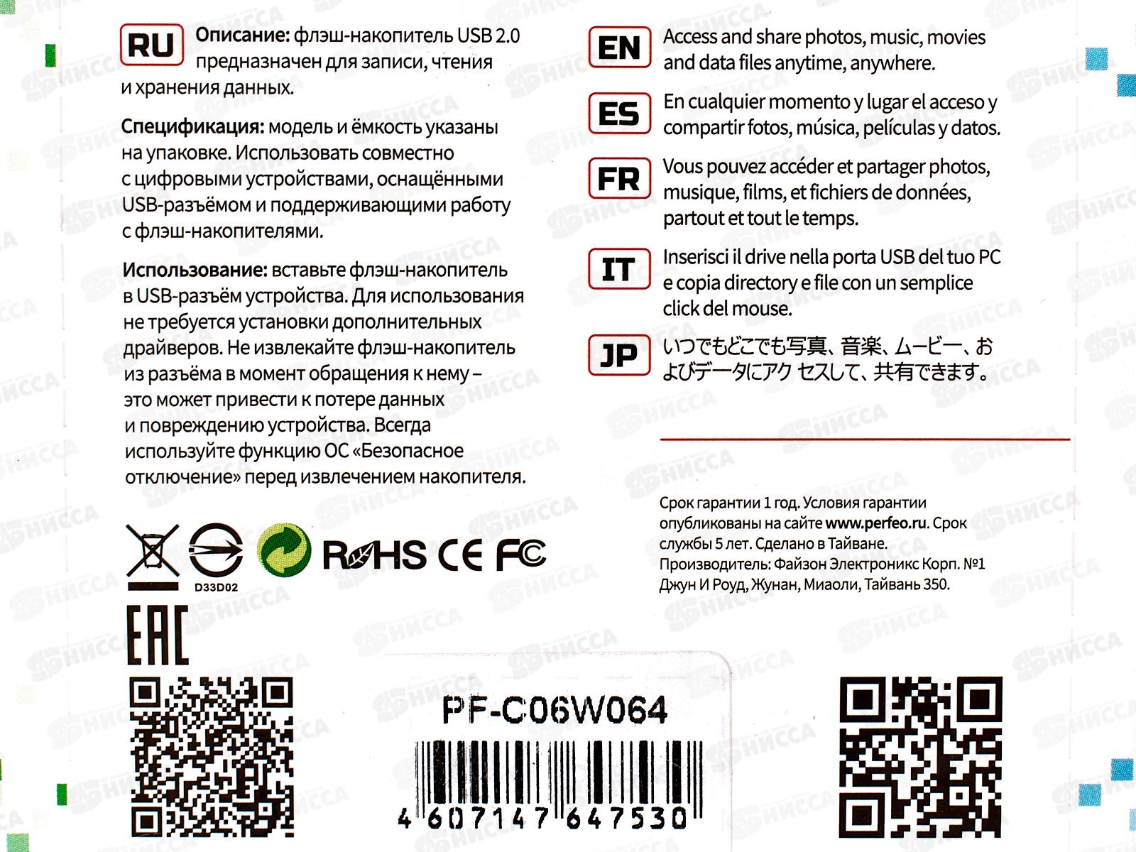 Флеш-карта Perfeo USB 64Gb C06 white