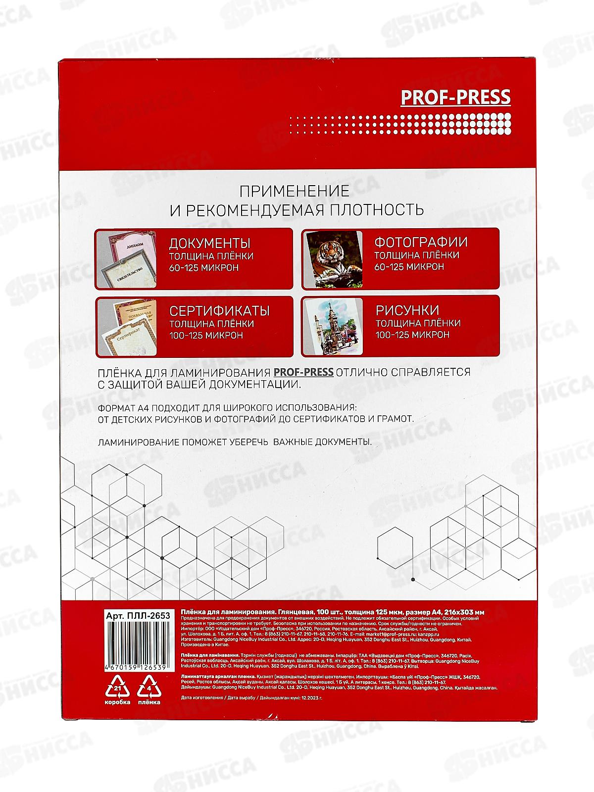 Пленка для ламинирования ПП А4 125мкр, 216*303мм, 100шт, глянцевая, ПЛЛ-2653 *10