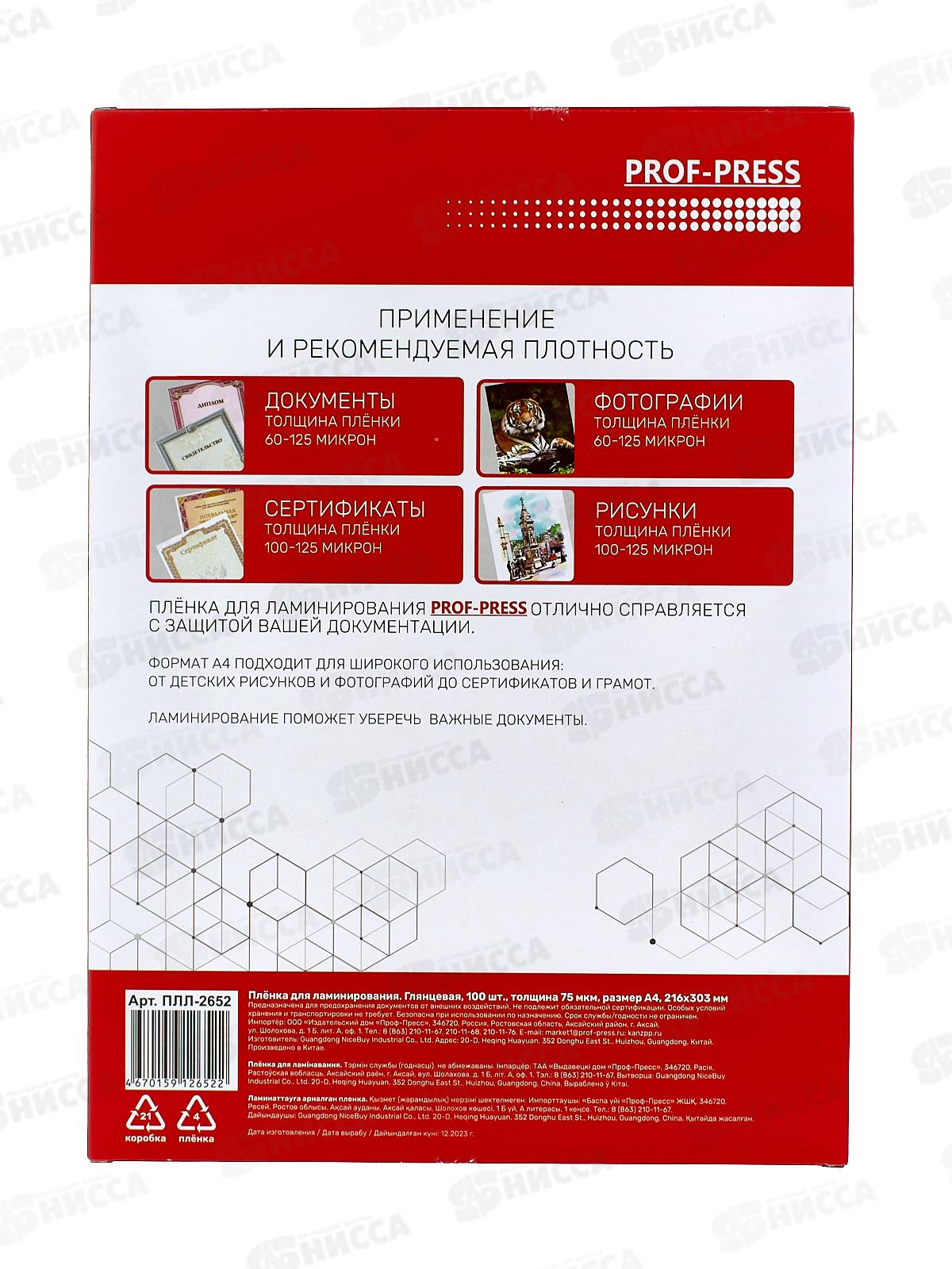 Пленка для ламинирования ПП А4 75мкр, 216*303мм, 100шт, глянцевая, ПЛЛ-2652 *10