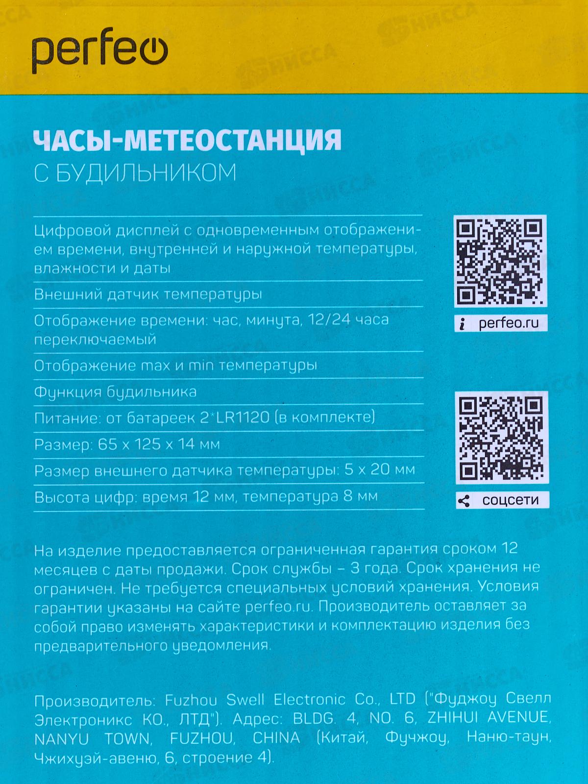 Часы-метеостанция Perfeo Meteo белый, PF_A4598