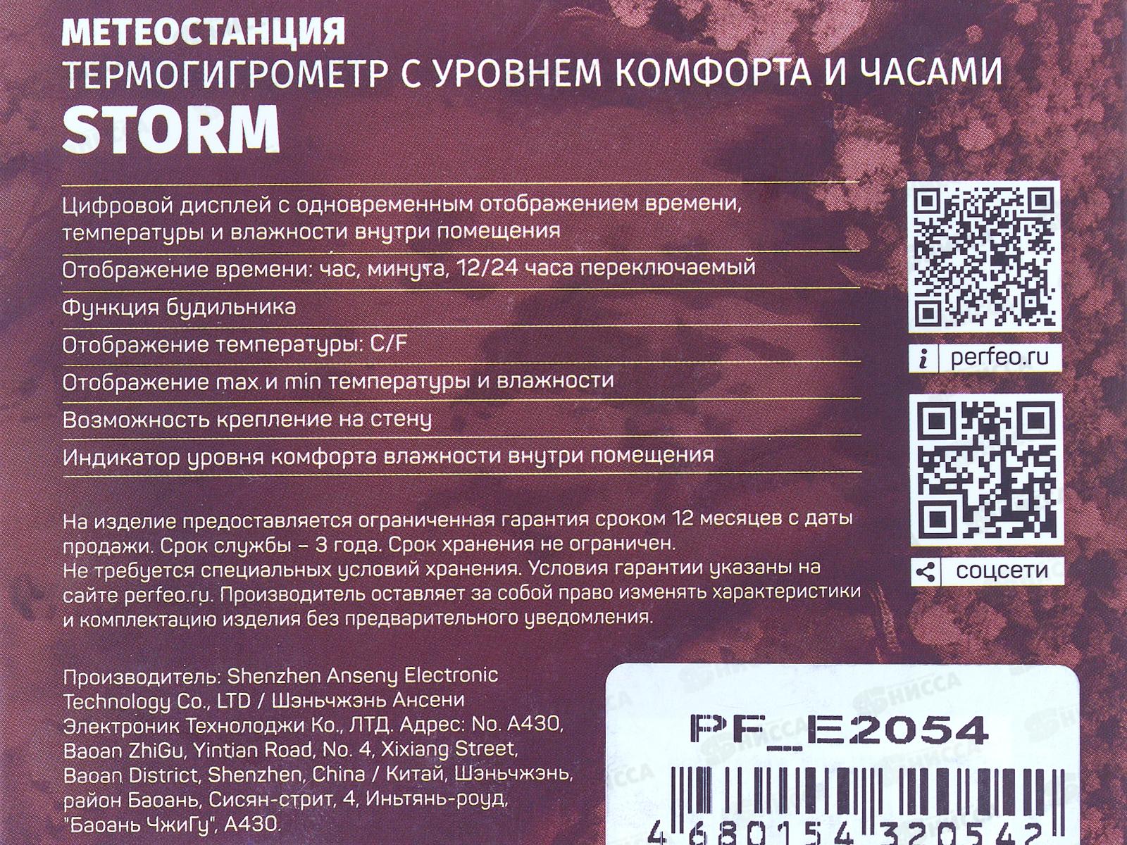 Часы-метеостанция Perfeo Nargi температура, влажность, время, PF_E2054