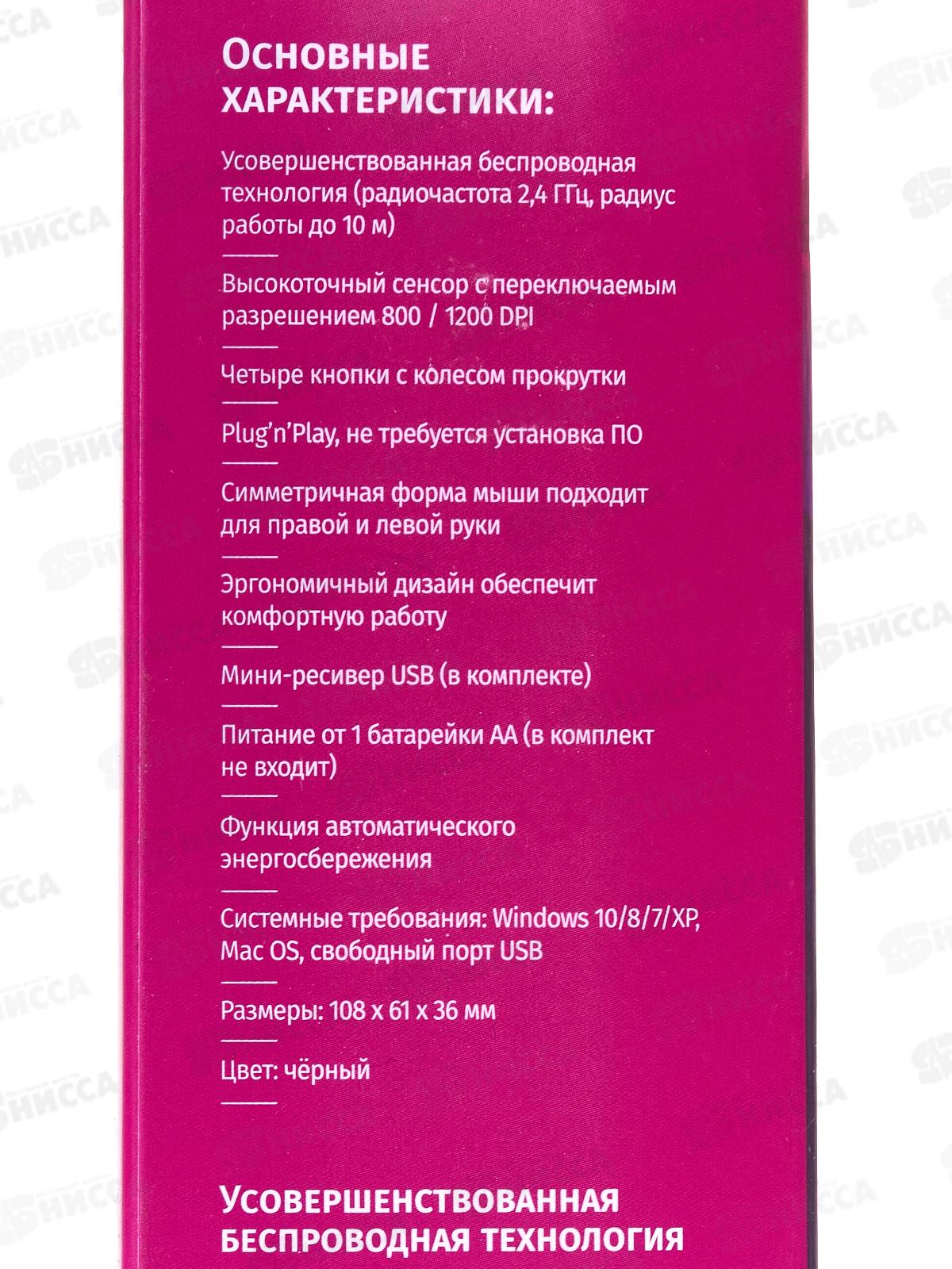 Мышь Perfeo беспроводная оптическая "WINGS", 4 кнопки, 800-1200 DPI, USB, чёрная, PF_C3596