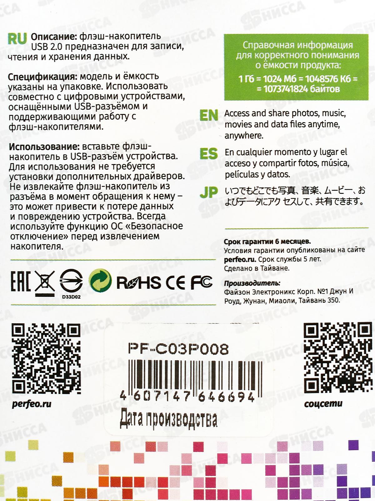 Флеш-карта Perfeo USB 8GB C03 Pink