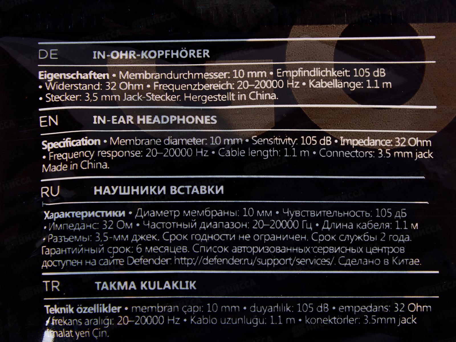 Наушники Defender стерео Basic-616 черные