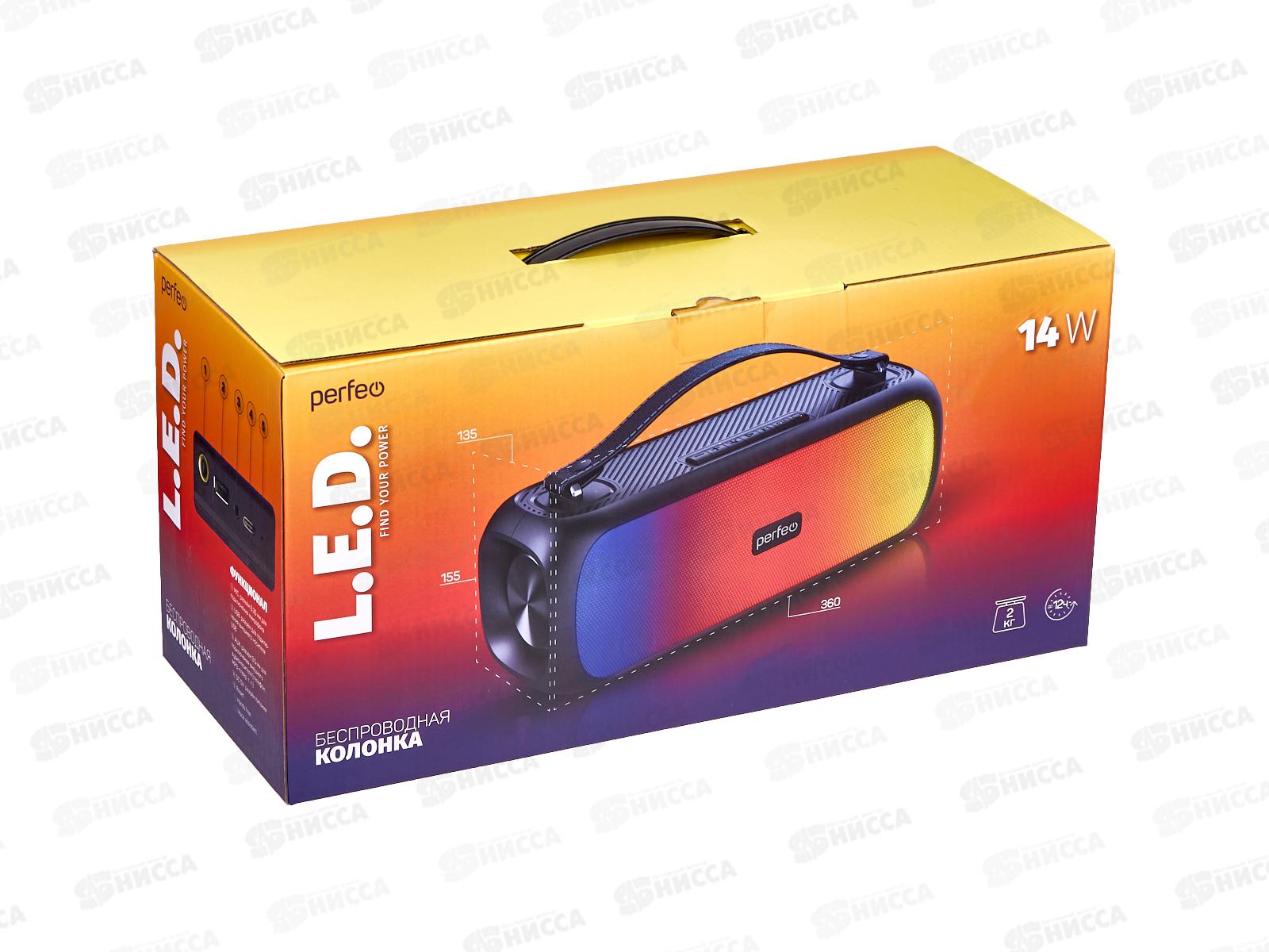 Колонка-Bluetooth Perfeo L.E.D. 14W (FM, MP3, AUX) 14395