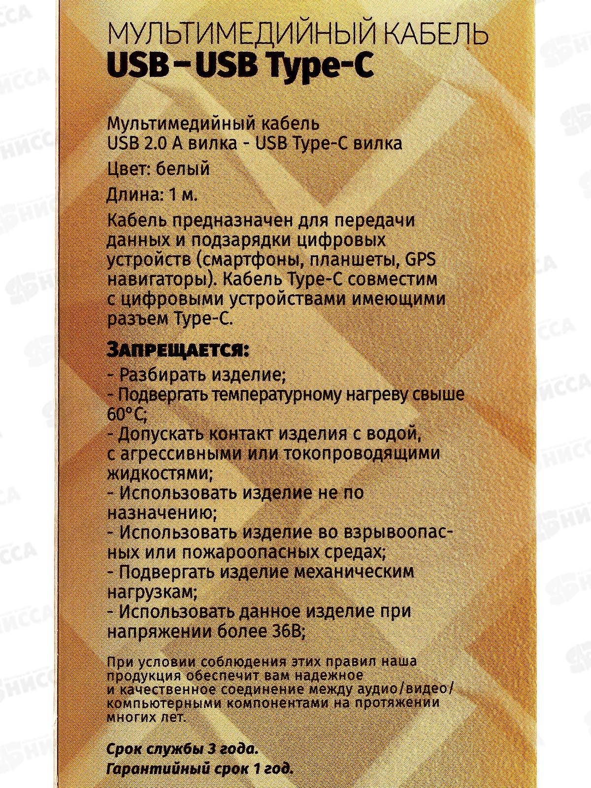 Контакты разъемов покрыты золотом, а контактная площадка - никелем. Предназначен для соединения переносных мультимедийных устройств ( мобильных телефонов, смартфонов, планшетов, MP-3 плееров, цифровых фото- и видеокамер ) с компьютером или зарядным устройством.