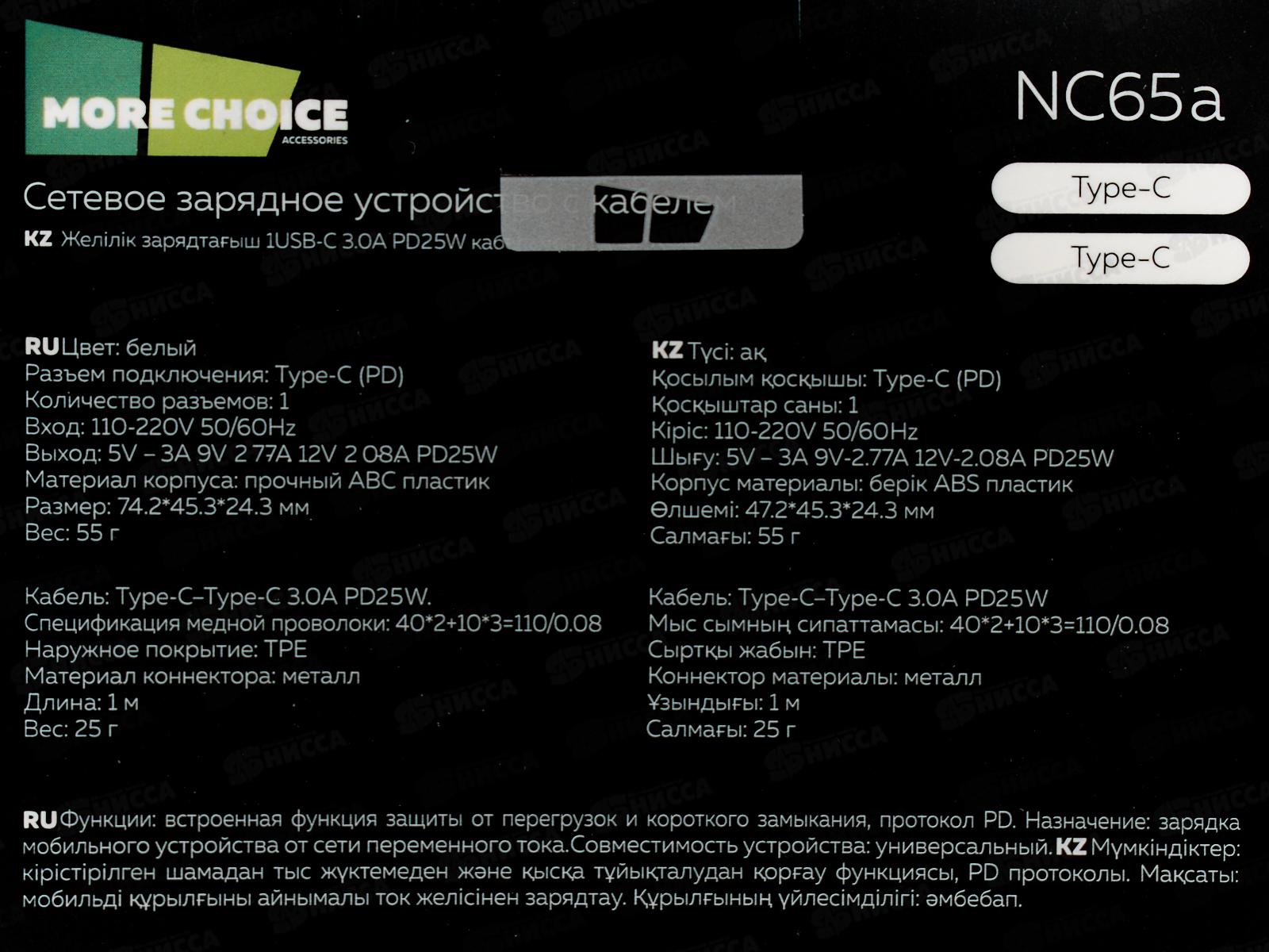 З/у сетевое 1Туре-С 3.0A PD25W б/з More choice NC65a White