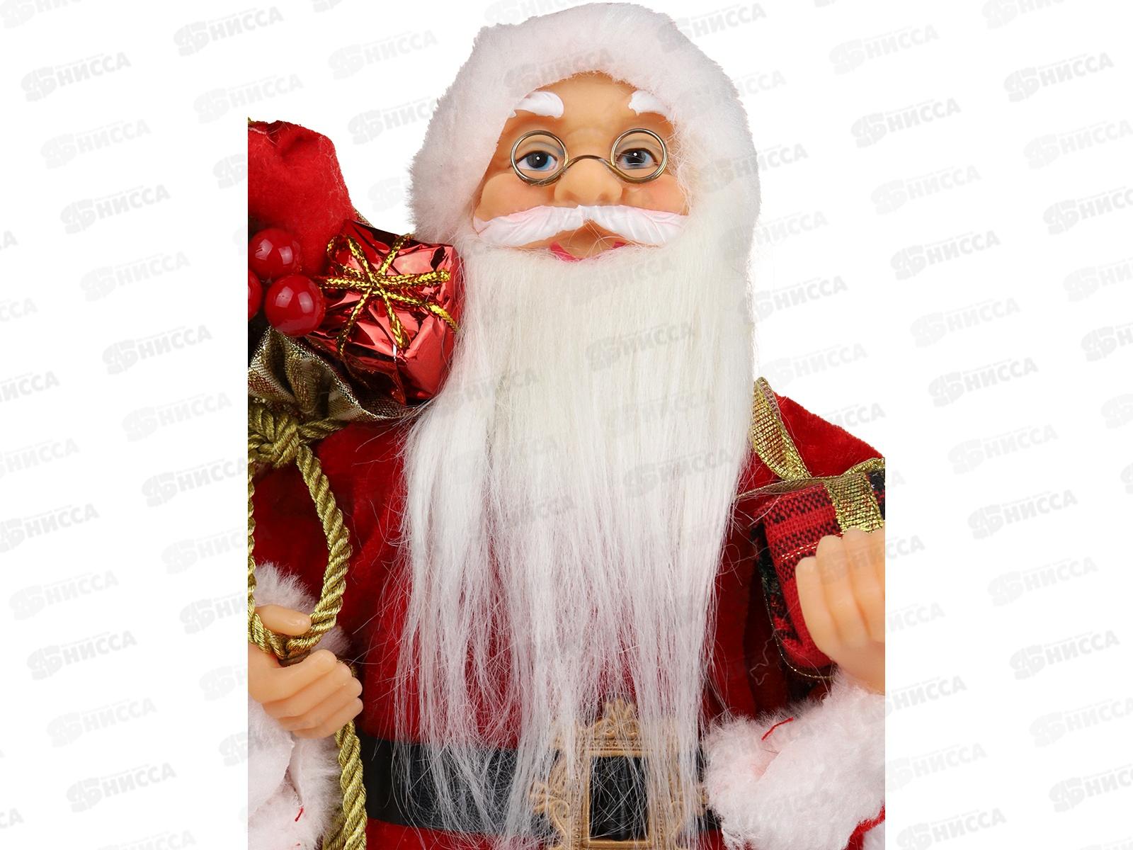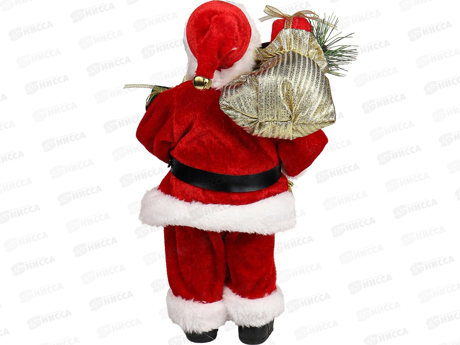 Дед Мороз 35см в красной шубе с белым мехом и подарками, НУ-6277