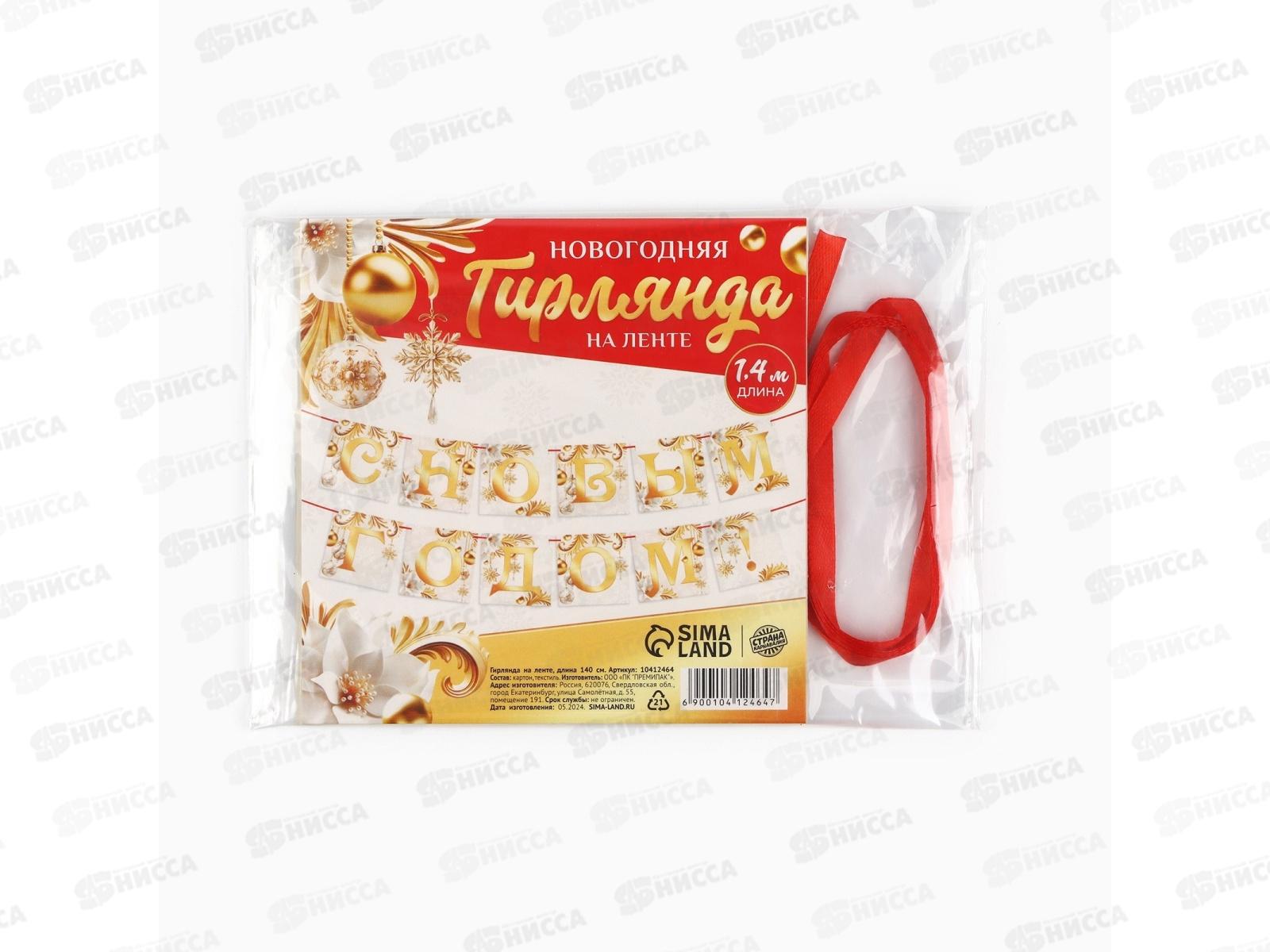 Гирлянда на ленте "С Новым Годом" бело-золотая, 140см 10412464
