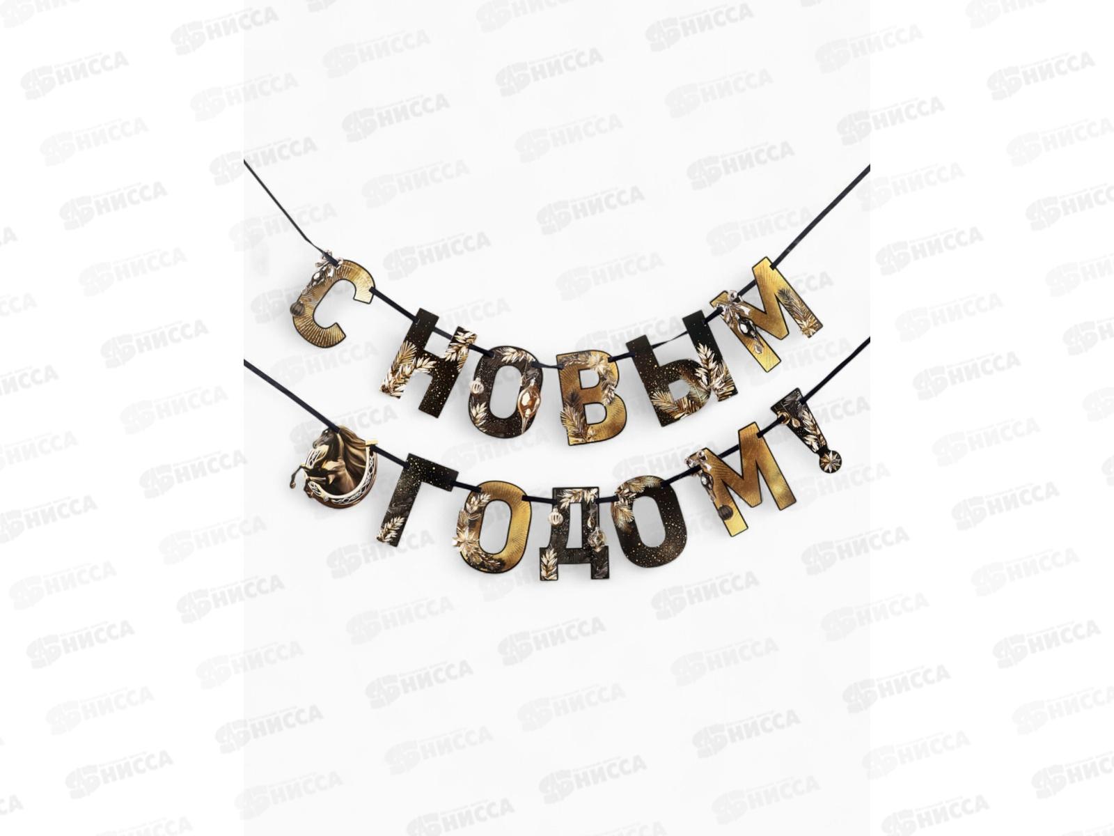 Гирлянда на ленте "С новым годом",лошадки,золотой 2,5м 10882789