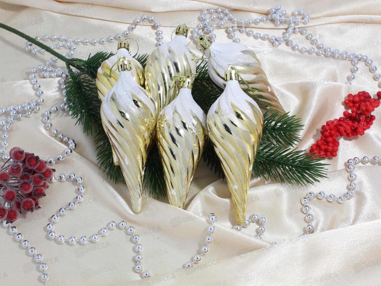 Пусть Новый год дарит лишь радость! В период зимних праздников не оставляйте без украшений ни один уголок дома, ведь именно они создают торжественное настроение. Елочные украшения "Сосулька в снегу" — это прекрасные украшения для вашей праздничной ели. В наборе 6 предметов, размером 11 см. Сделайте праздник ярким!
