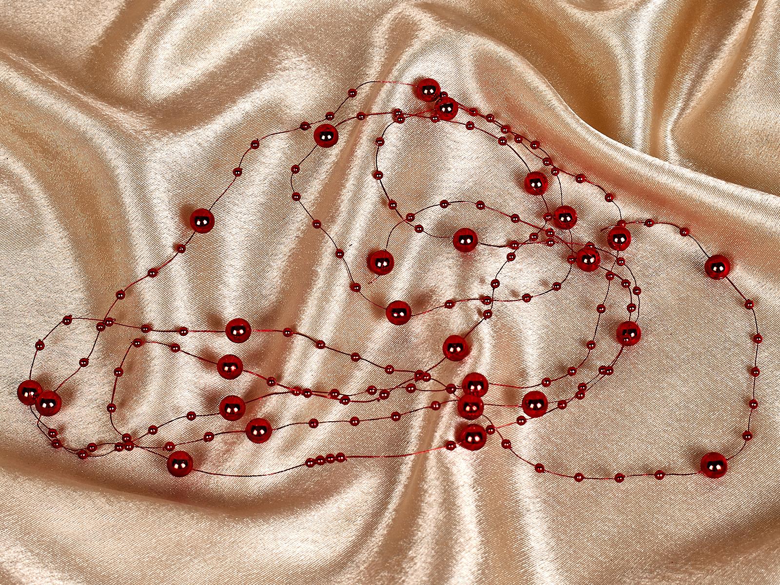 Бусы на елку "Роса", красного цвета — незаменимый декор, который помогает создавать невероятно уютную атмосферу Нового Года! Они эффектно выделяются на фоне хвои, придавая оформлению праздничный вид. Кроме того, бусами можно украсить предметы интерьера. Данный аксессуар является завершающим штрихом композиции, придает ей особого шарма и романтизма. Длина - 2 метра.