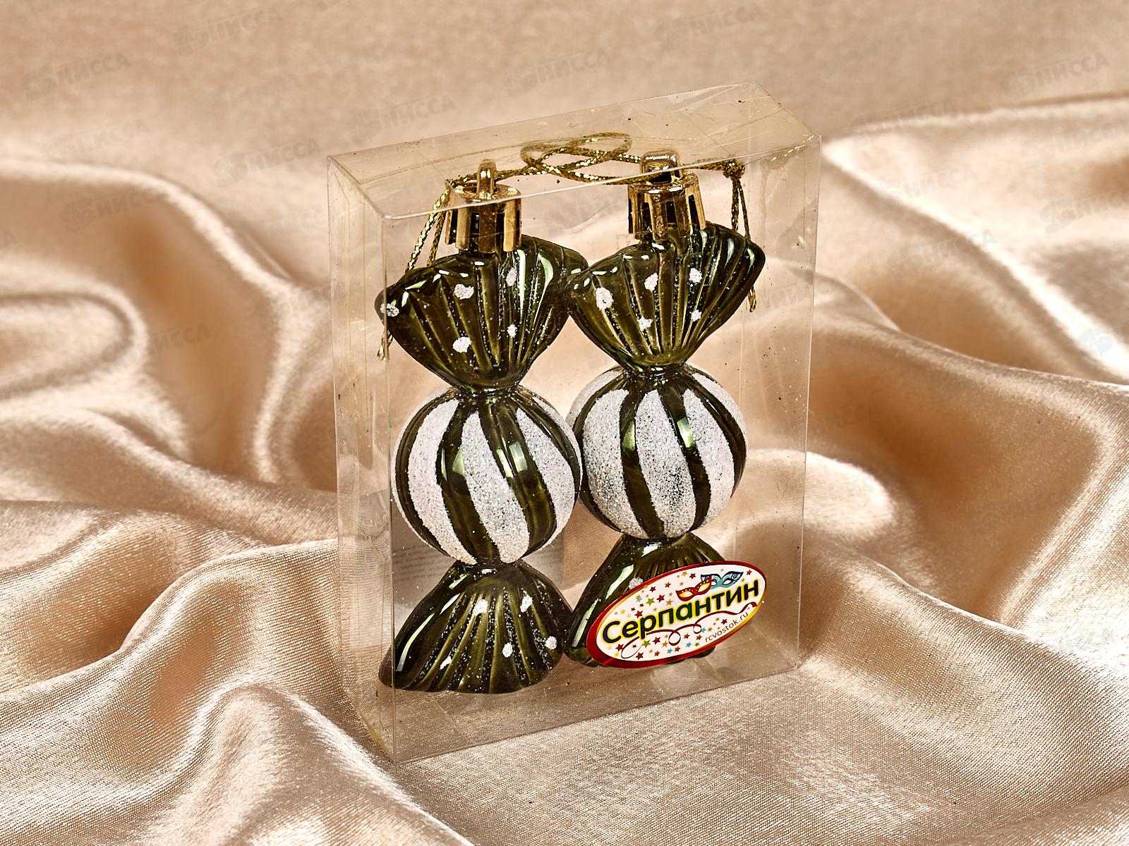 Набор елочных украшений 2шт Таинственное очарование 8см конфетки изумруд 916-890