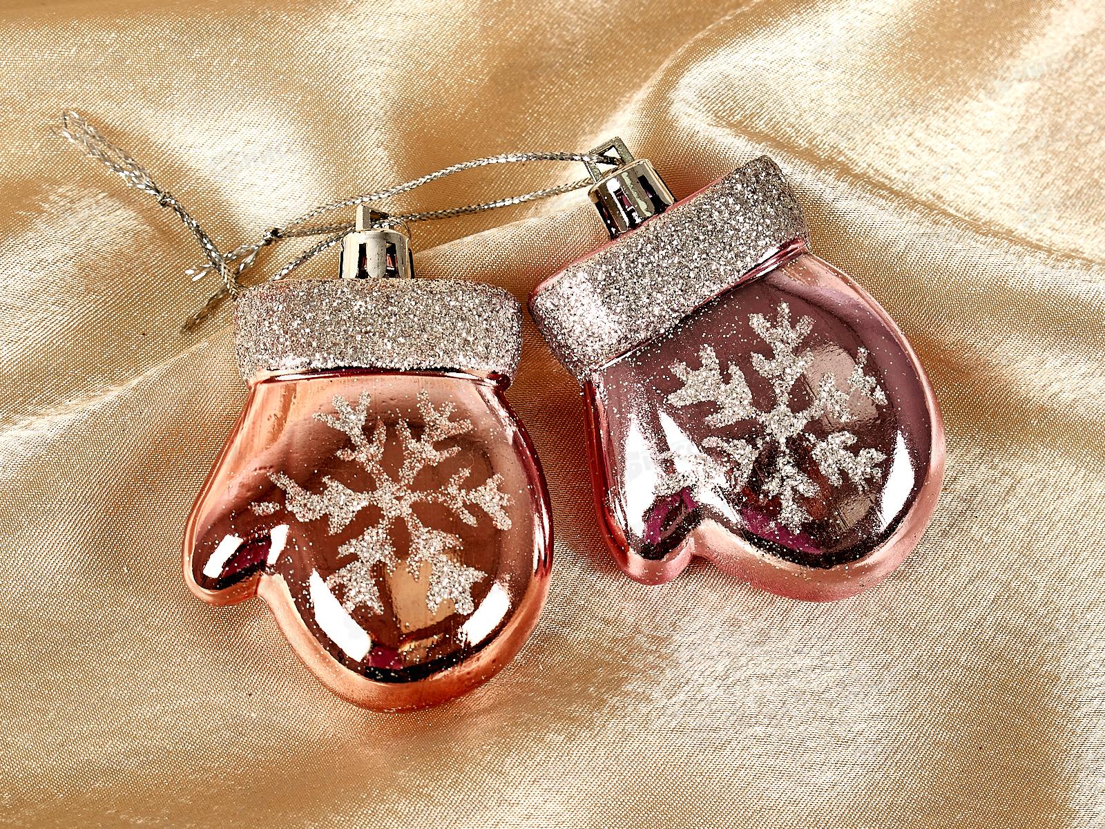 Елочное украшение Волшебные варежки 6см 2шт роз золото 201-2102