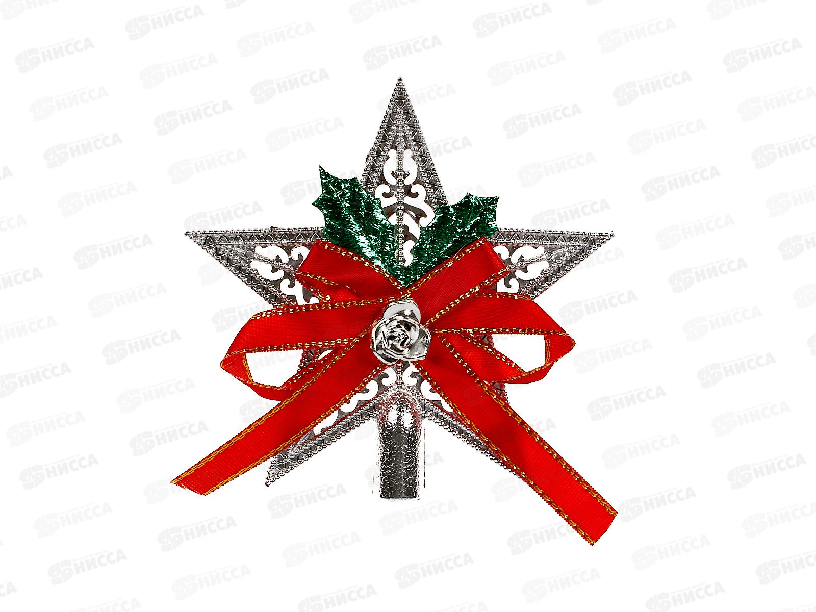 Верхушка новогодняя 10см "Сияющая звезда" серебро 201-3501