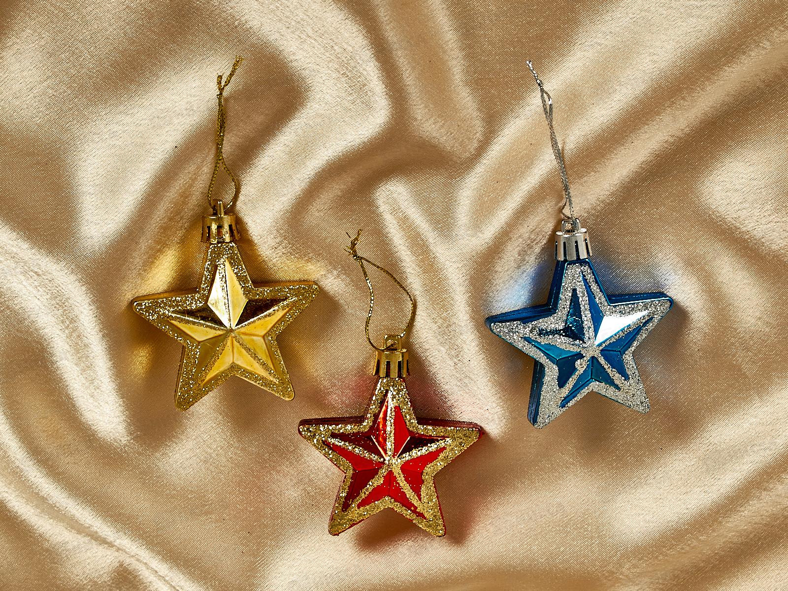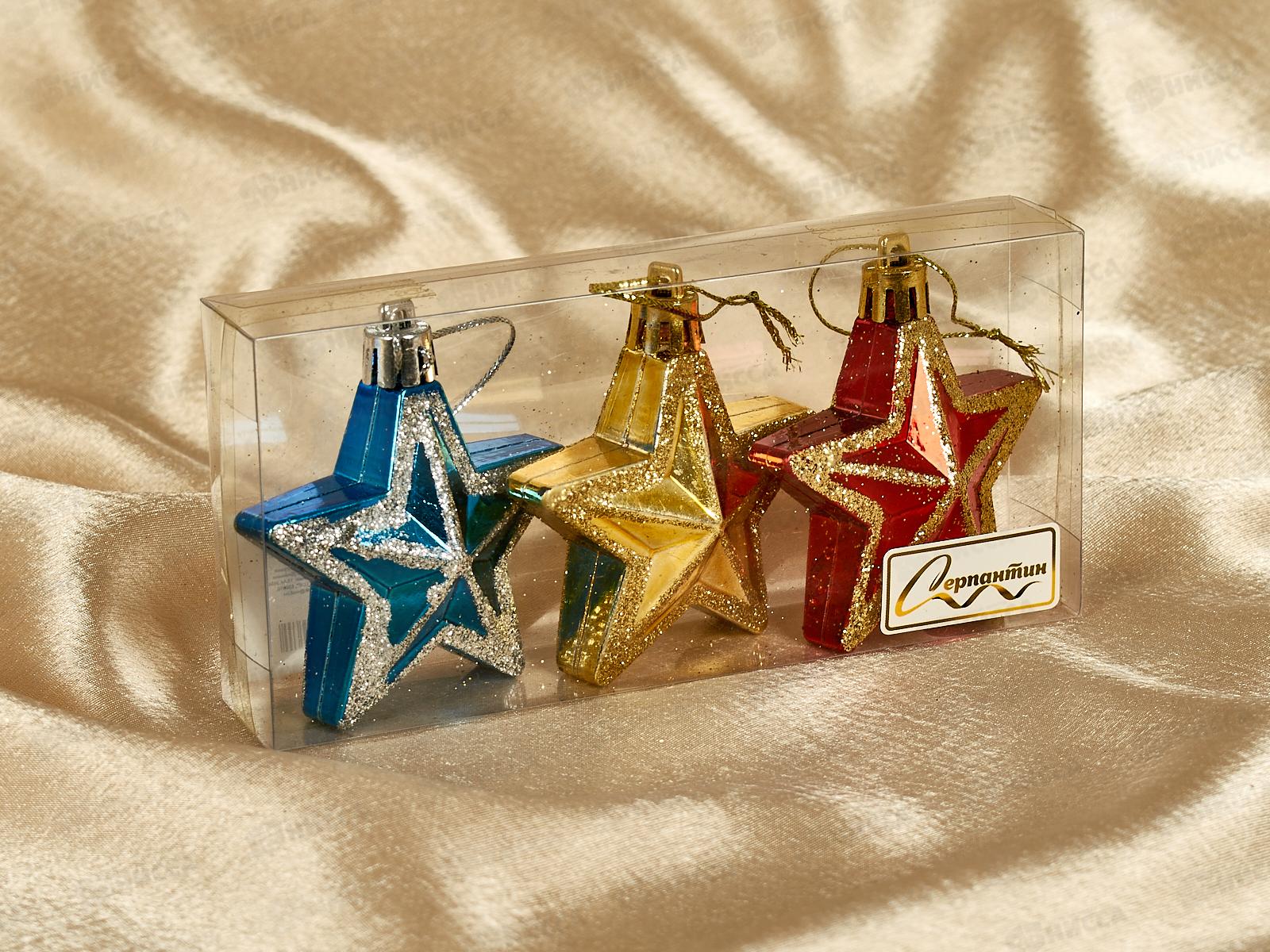 Набор елочных украшений 3шт Звездочки праздничные 5см 196-351