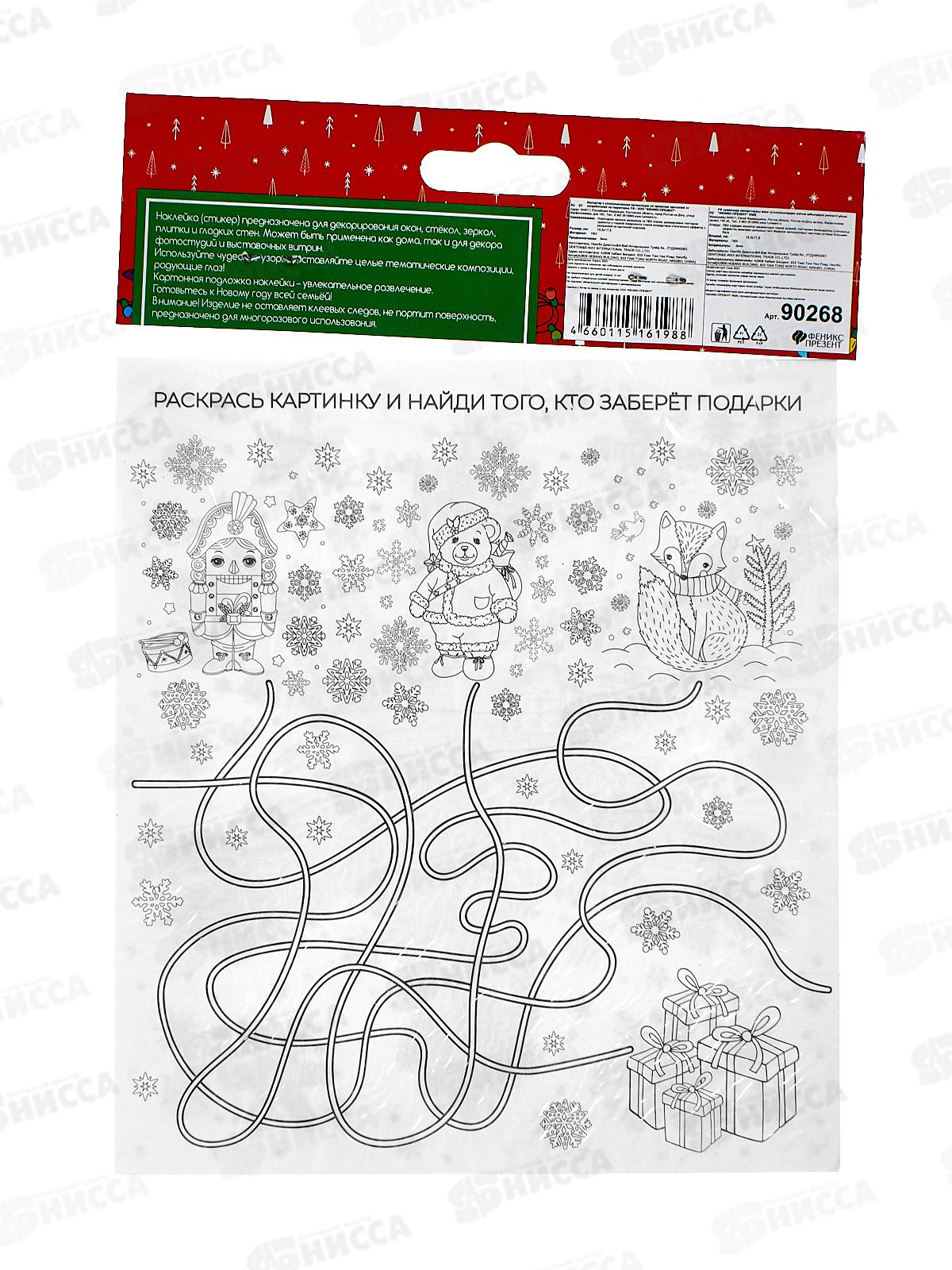 Наклейка на стекло Елочная снежинка, 15,5х17,5см, 90268