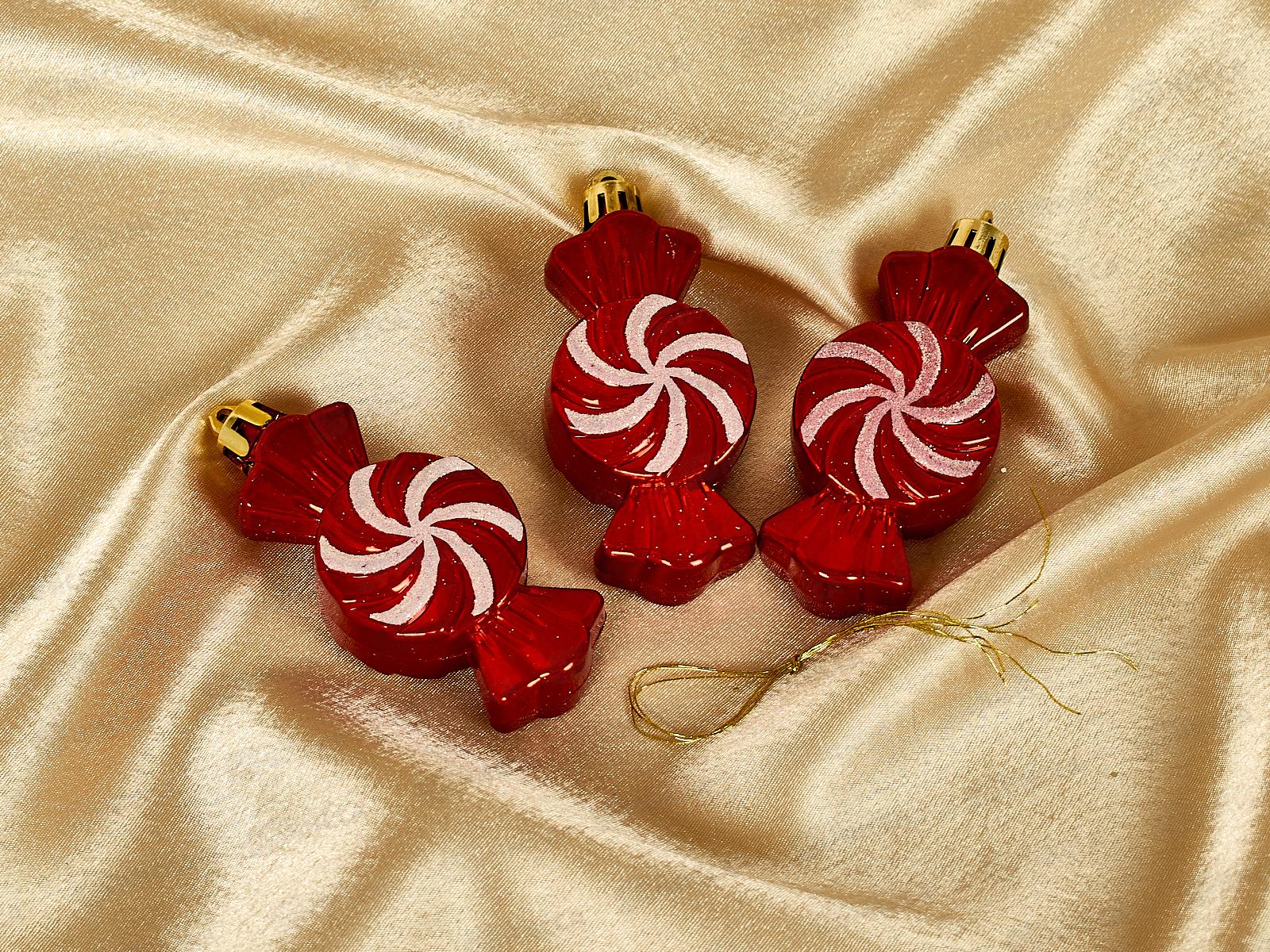 Елочное украшение Карамельки 3шт, красный, 3,8х2х8см, SYQC-0123234-1