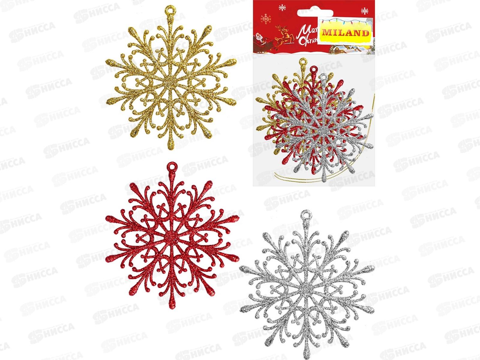 Набор ёлочных подвесок "Нежные снежинки" 9см 3шт, НУ-8328