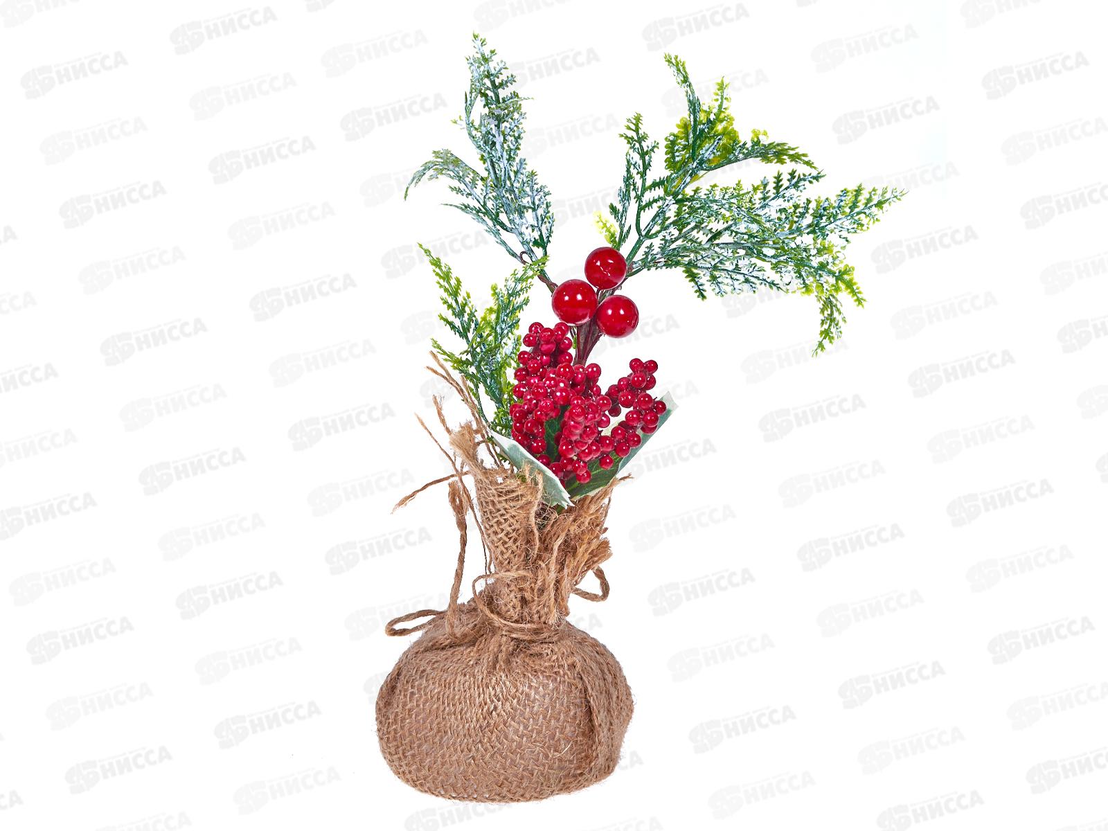Декор "Зимнее очарование" ягодки листья в мешочке 17см 4306297
