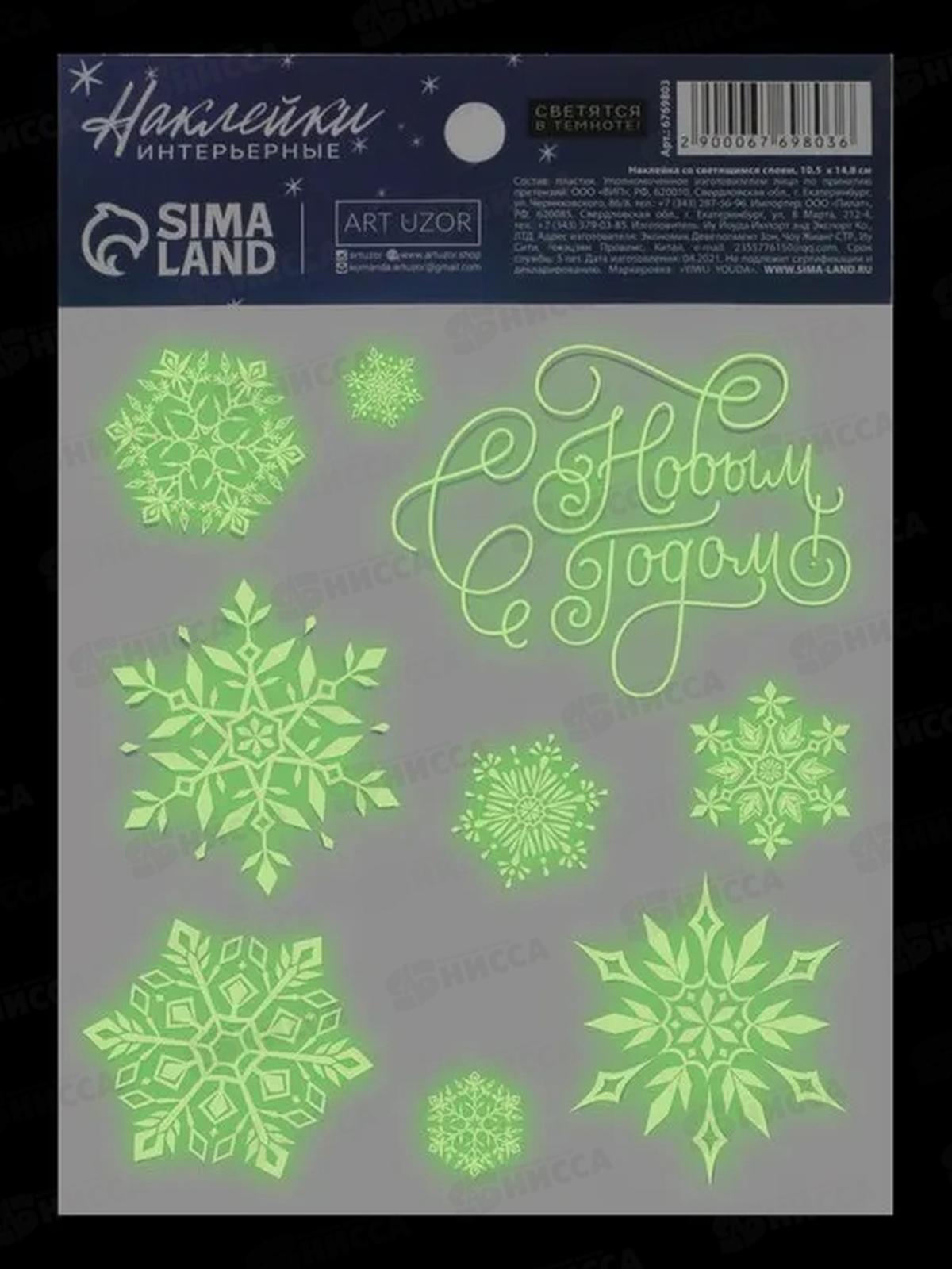 Наклейка на стекло "Снежинки" свет слоем 10,5*14,8 см 6769803