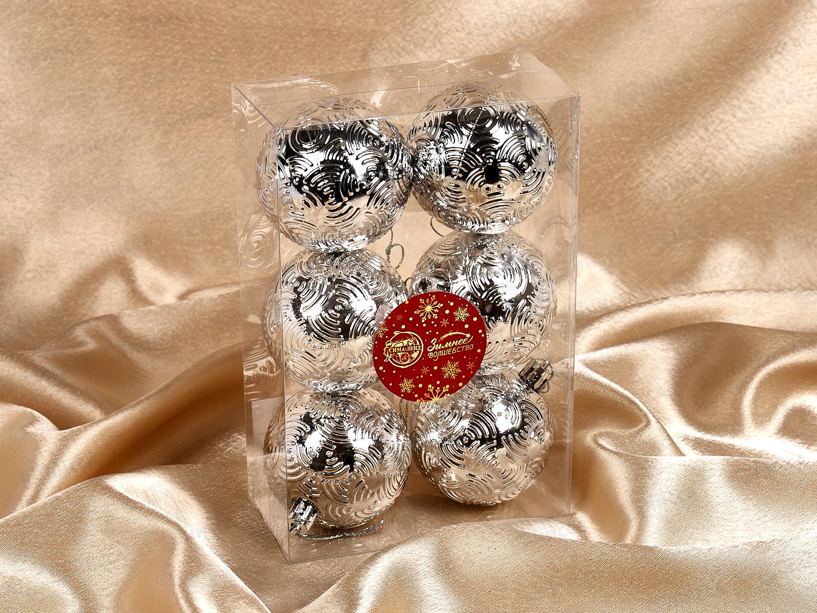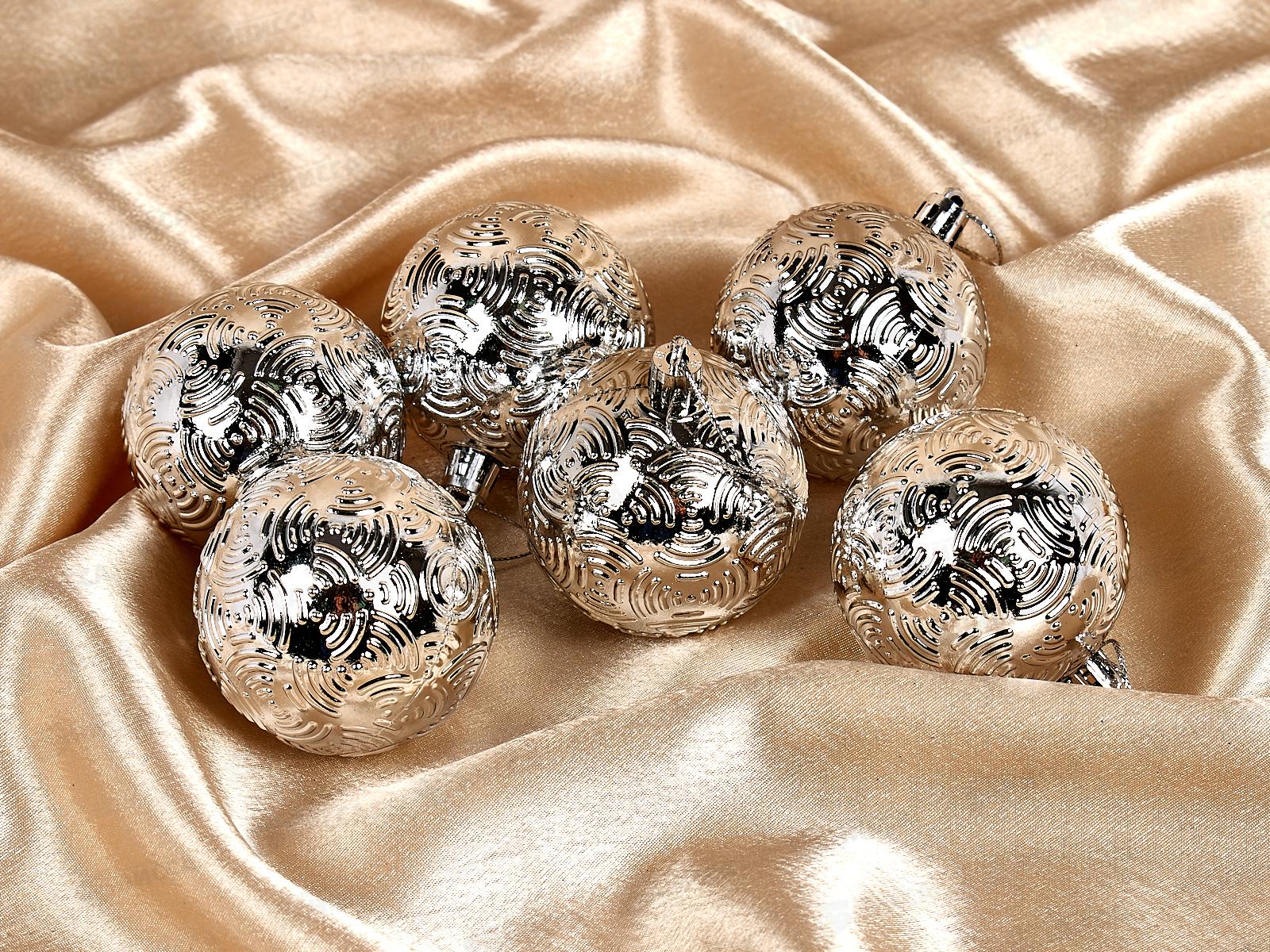 Набор шаров 6шт, 6см "Объемные бантики" серебро 4941989