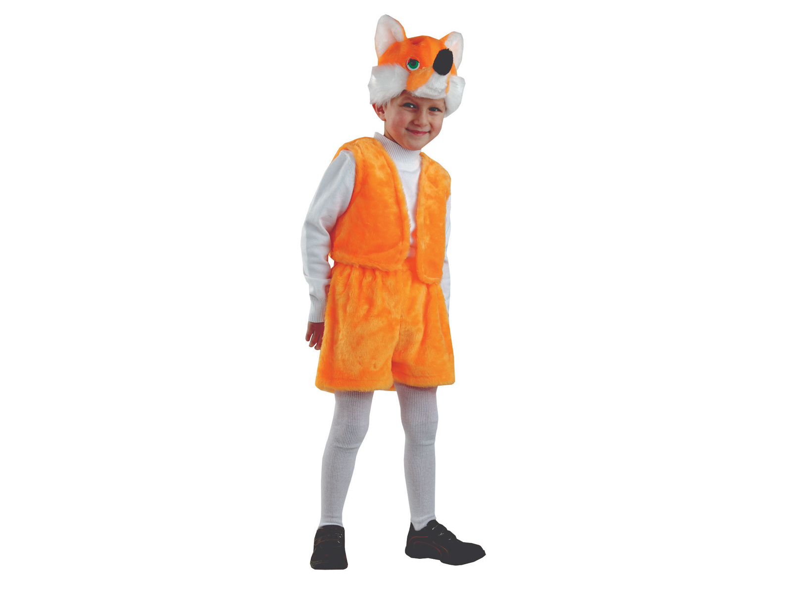 Состав комплекта: жилет без застежек, шорты на резинке с хвостиком сзади, шапочка с ушками, глазками и носиком лисы, шапочка на резинке.
