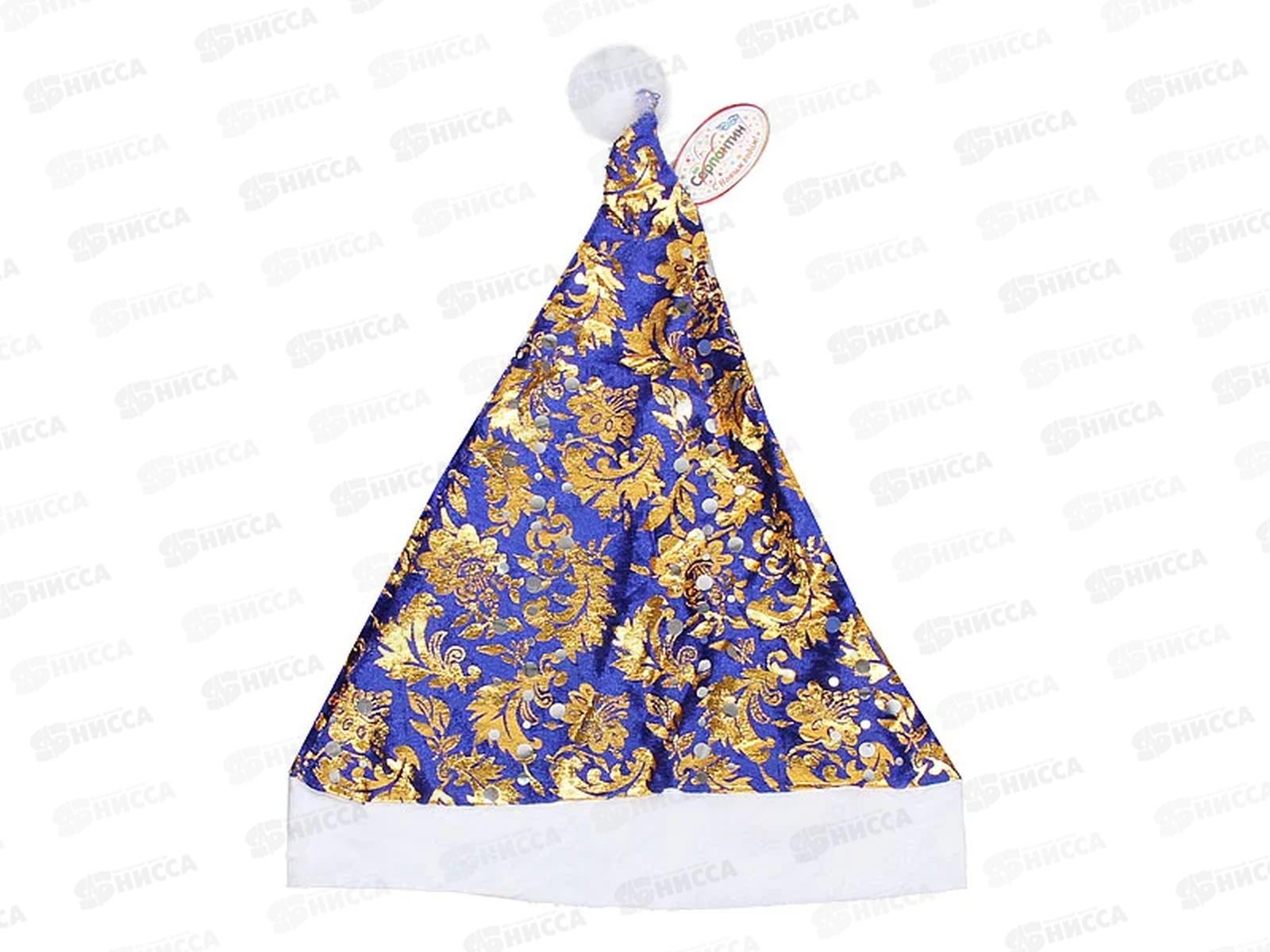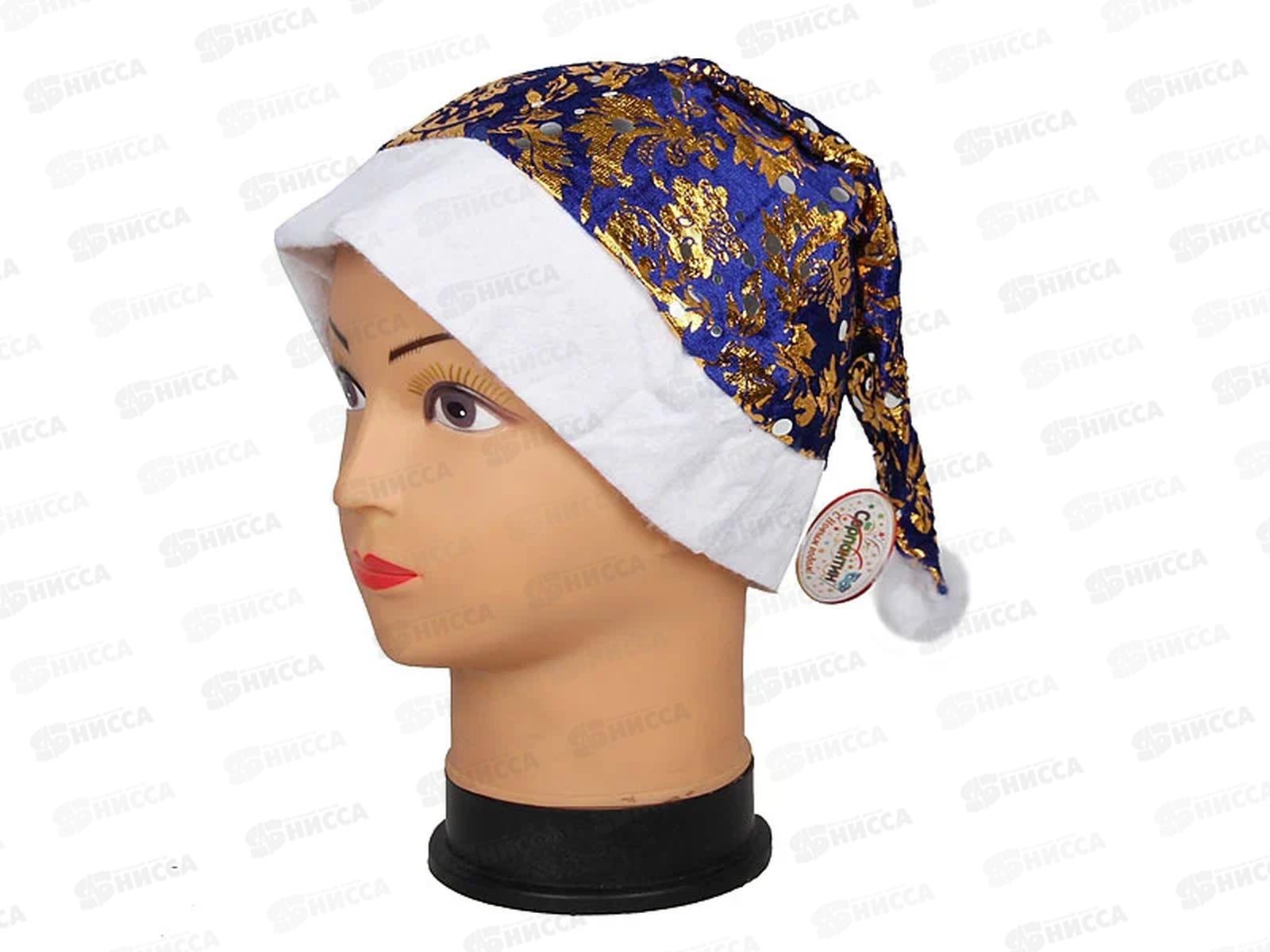 Колпак "Дед Мороз" Узоры синий 28*38 182-198
