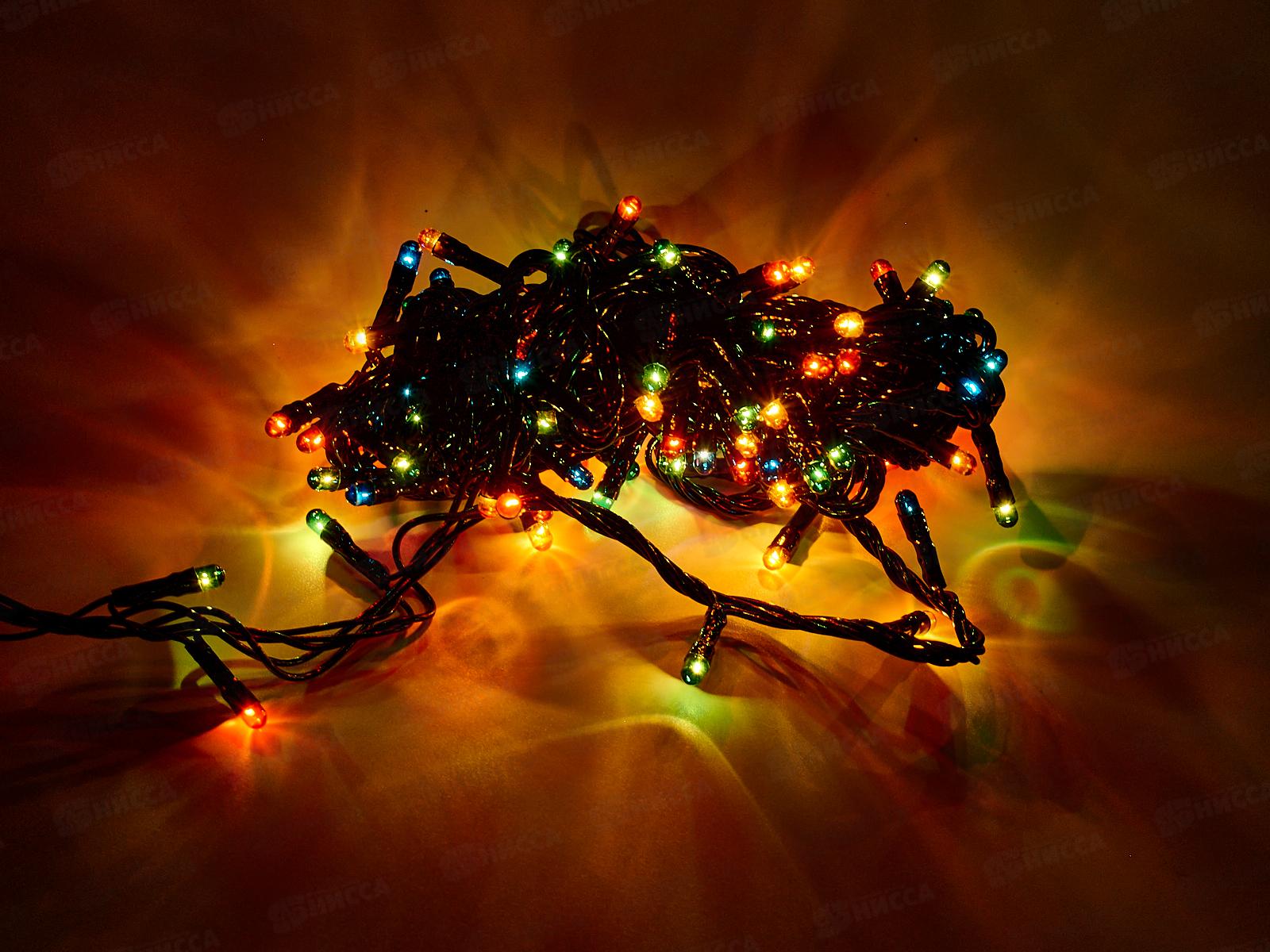 Гирлянда электрическая, новогодняя 4,0 м., 100 ламп, черный провод, разноцв., 220В, 50Гц, AL-8007-2-1 *100