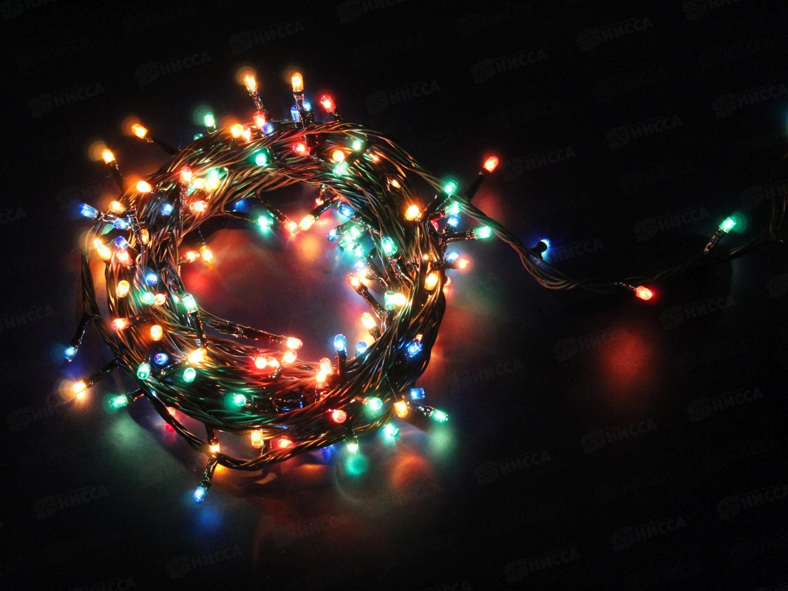 Гирлянда электрическая, новогодняя 6,5 м., 180 ламп, черный провод, разноцв., 220В, 50Гц, AL-8007-4-1 *100