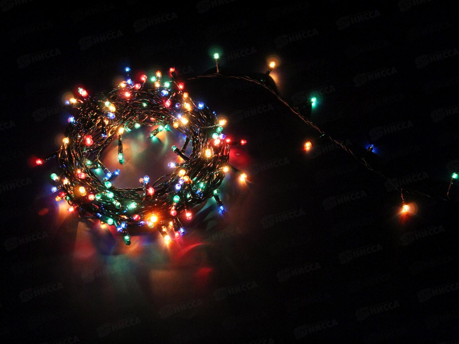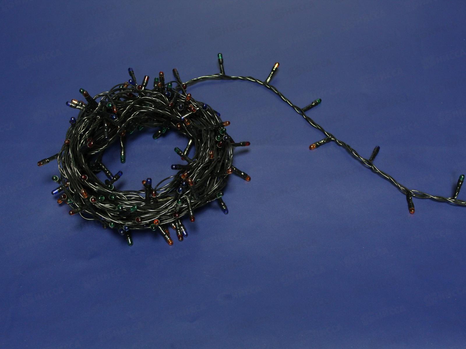 Гирлянда электрическая, новогодняя 7,5 м., 200 ламп, черный провод, разноцв., 220В, 50Гц, AL-8007-5 *100