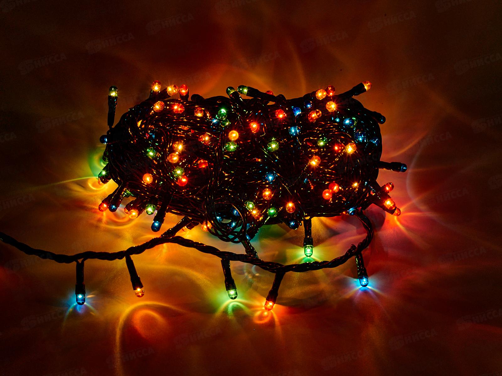 Гирлянда электрическая, новогодняя 7,5 м., 200 ламп, черный провод, разноцв., 220В, 50Гц, AL-8007-5-1 *100