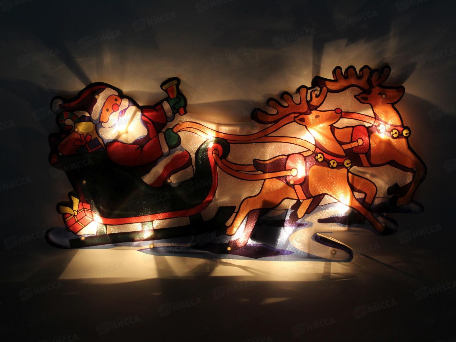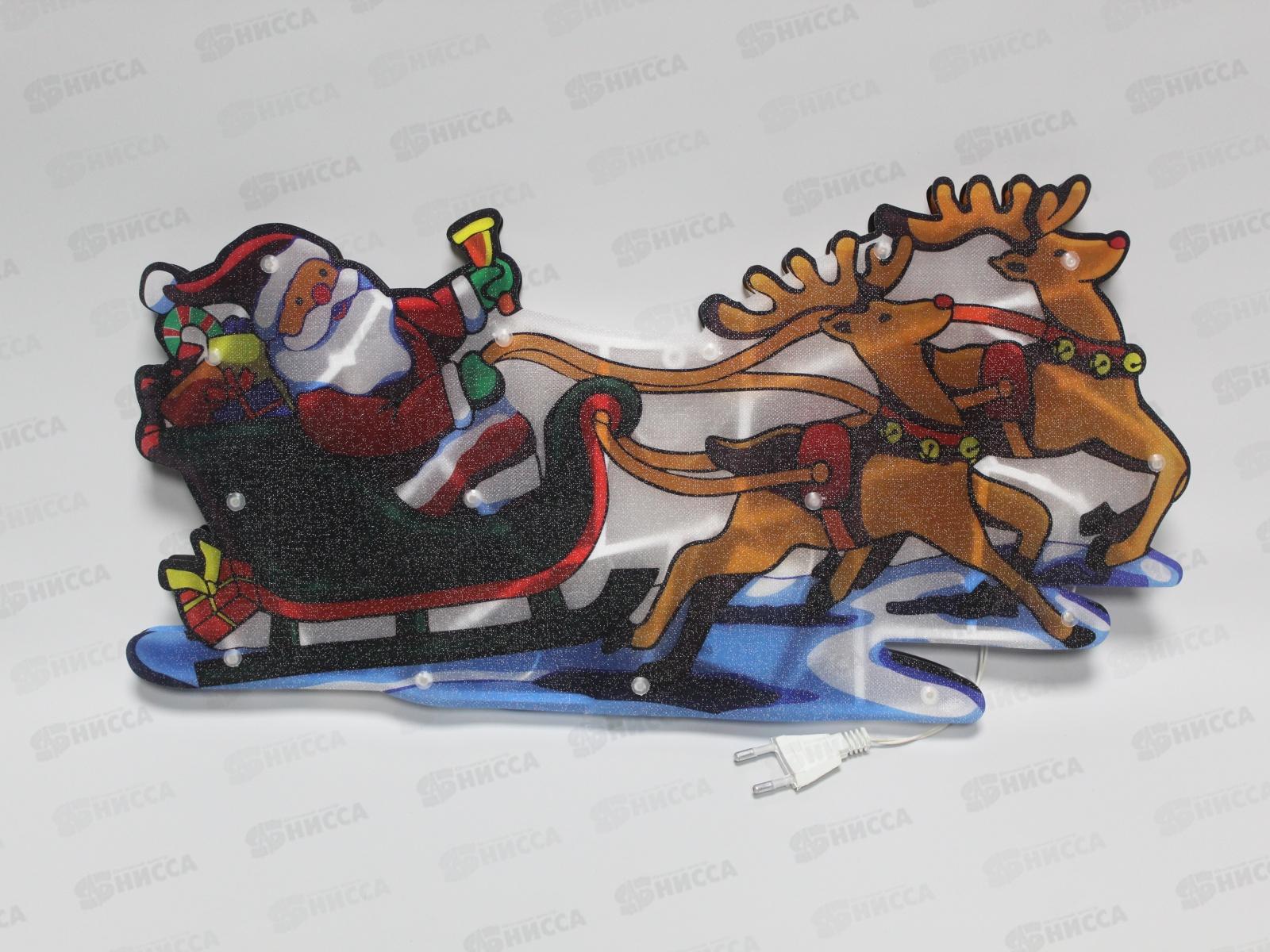 Гирлянда электрическая, новогодняя панно 43см., "Дед Мороз на санях", LED диоды, белый провод, лунный цв., 220В, 50Гц, AL-8011 *50