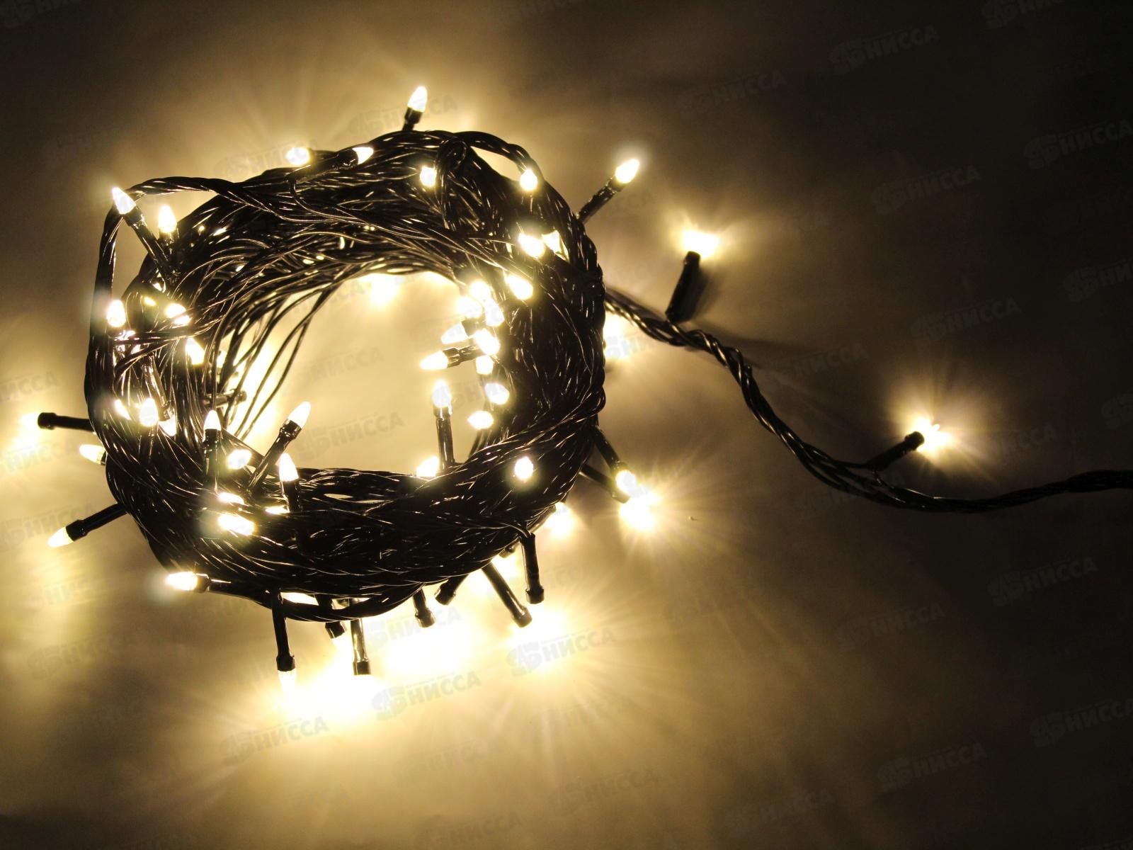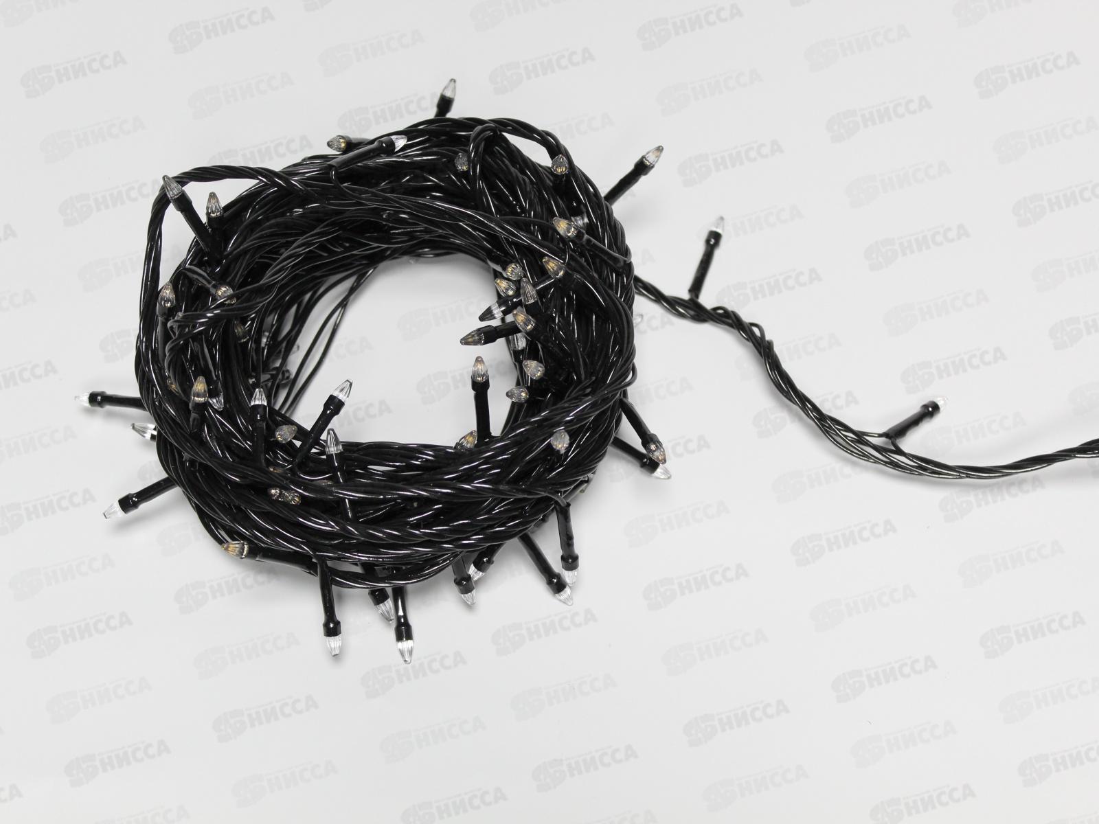 Гирлянда электрическая, новогодняя 9,3 м.100 диодов, черный провод,(Шампань) белый цв., 220В, 50Гц, AL-3725-1 *100