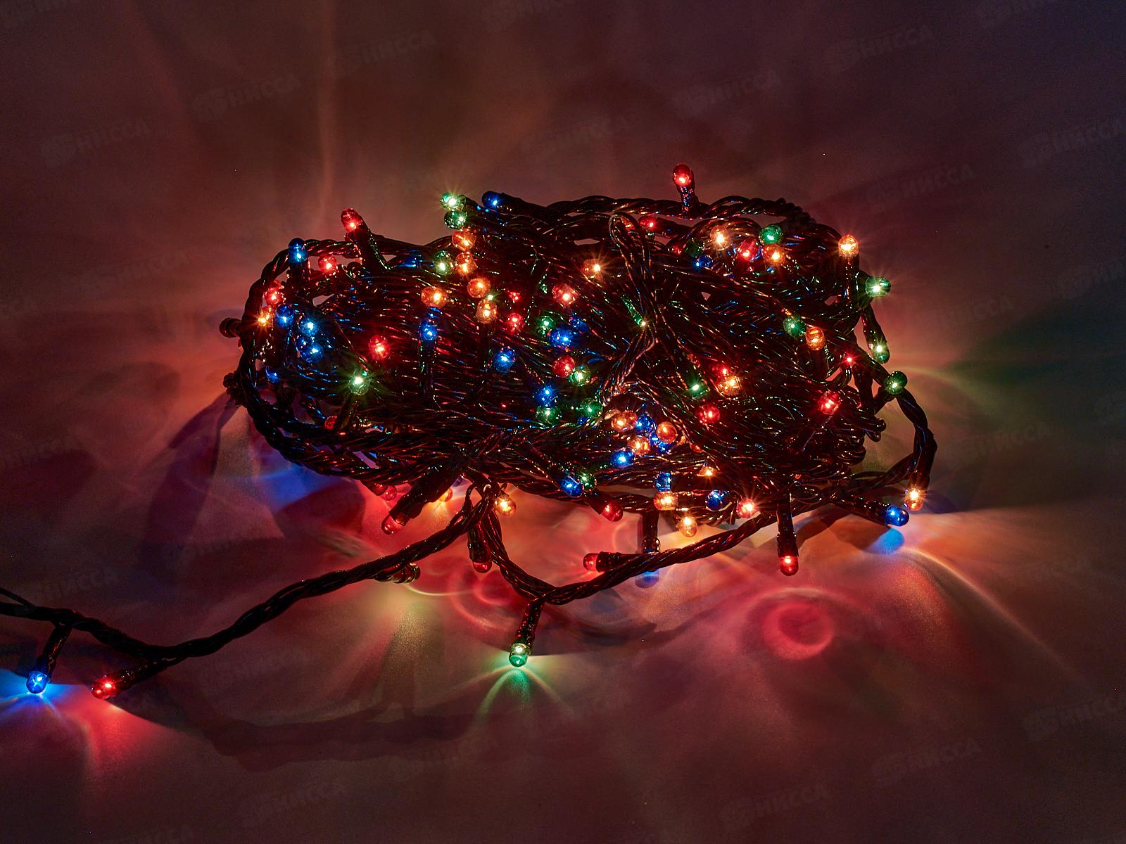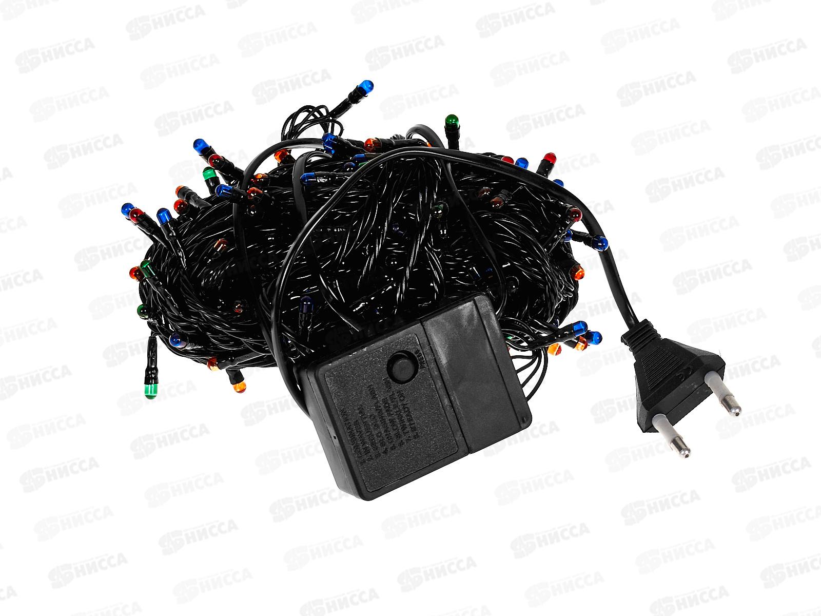 Гирлянда электрическая, новогодняя 8,0 м., 200 ламп, черный провод, разноцв., 220В, 50Гц, AL-3726-5 *100