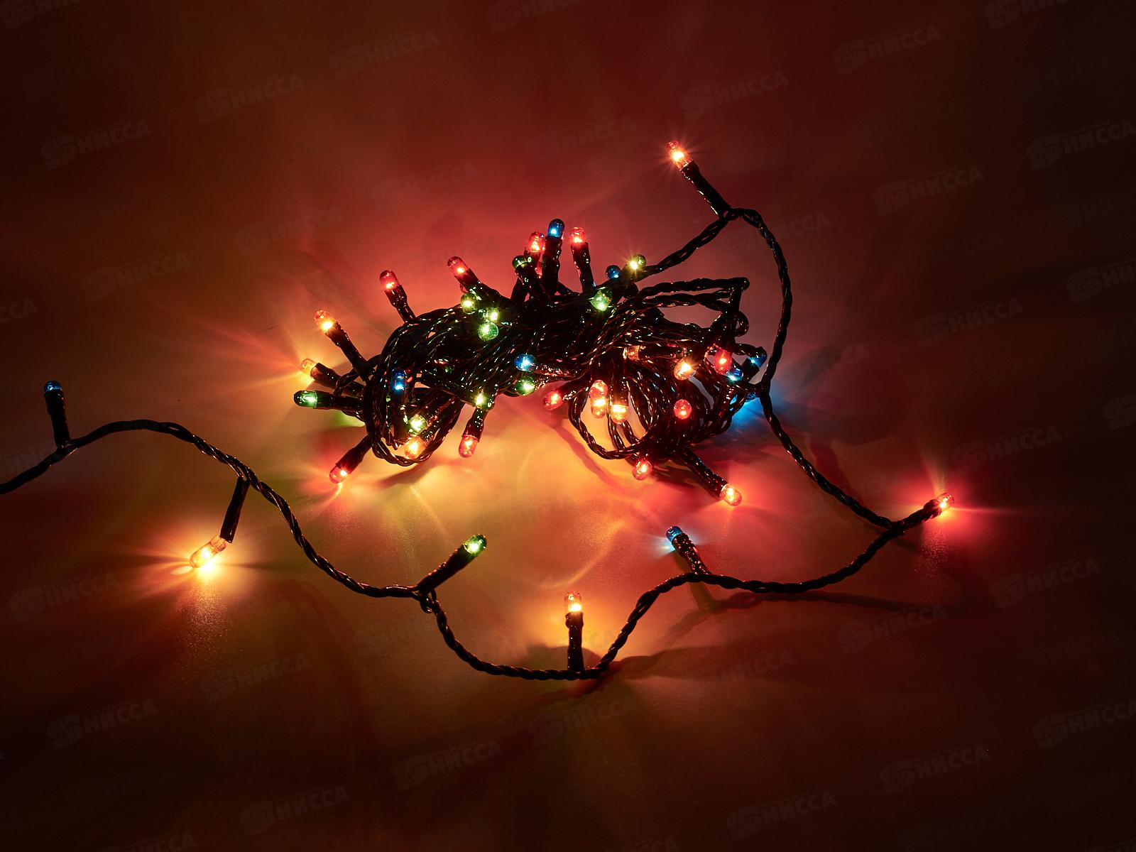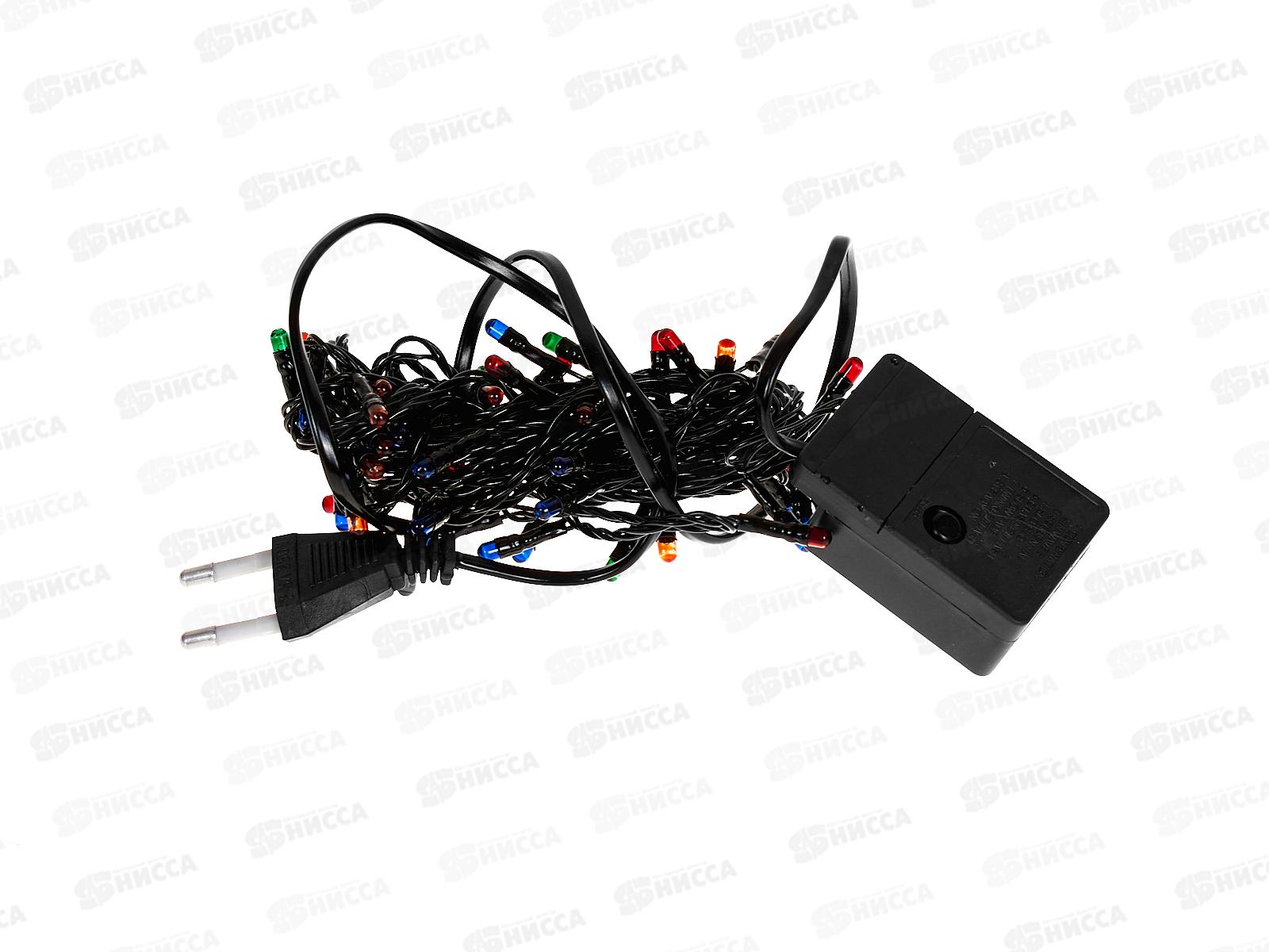 Гирлянда электрическая, новогодняя 3,5 м., 60 ламп, черный провод, разноцв., 220В, 50Гц, AL-3726-1 *100