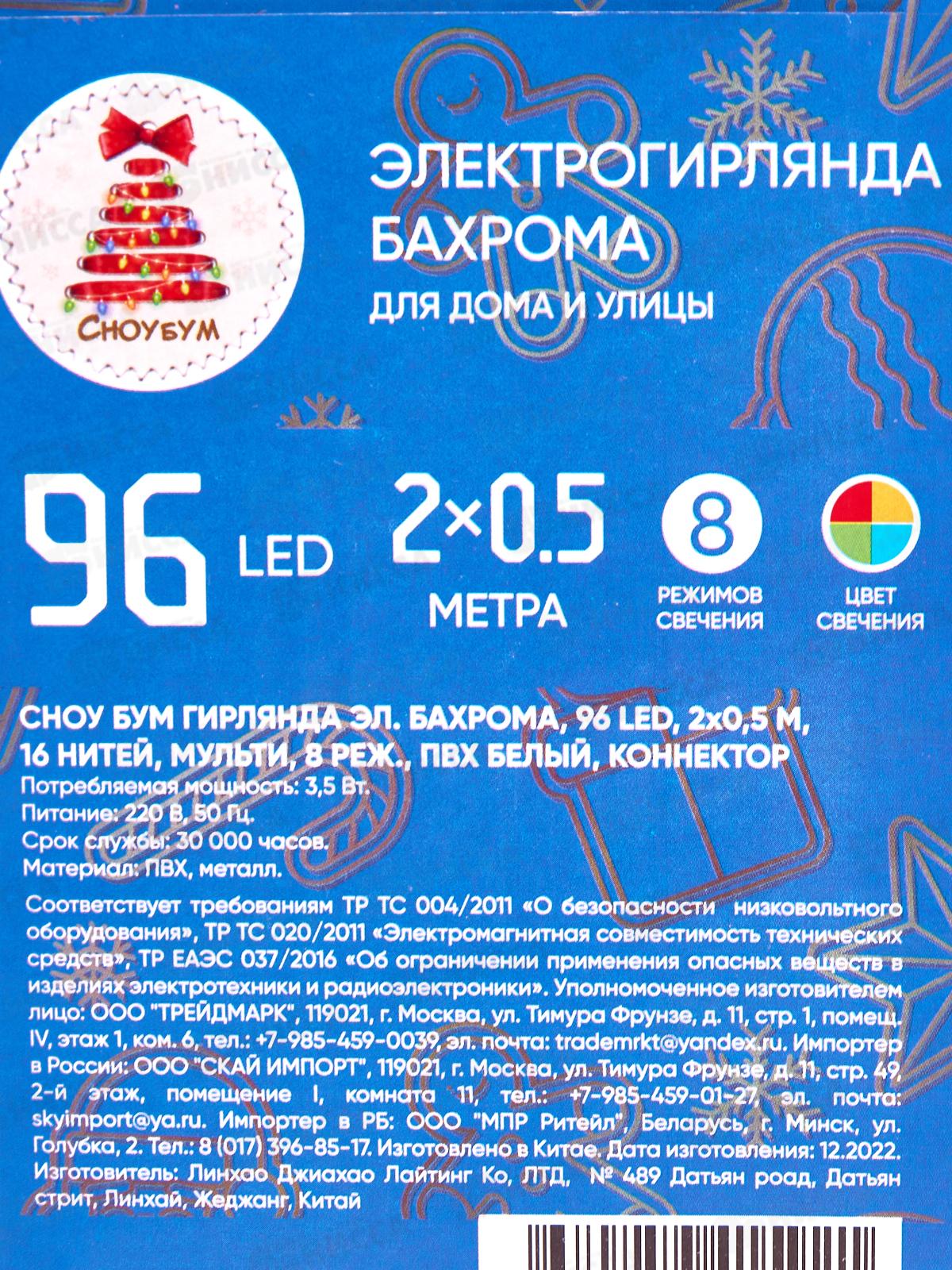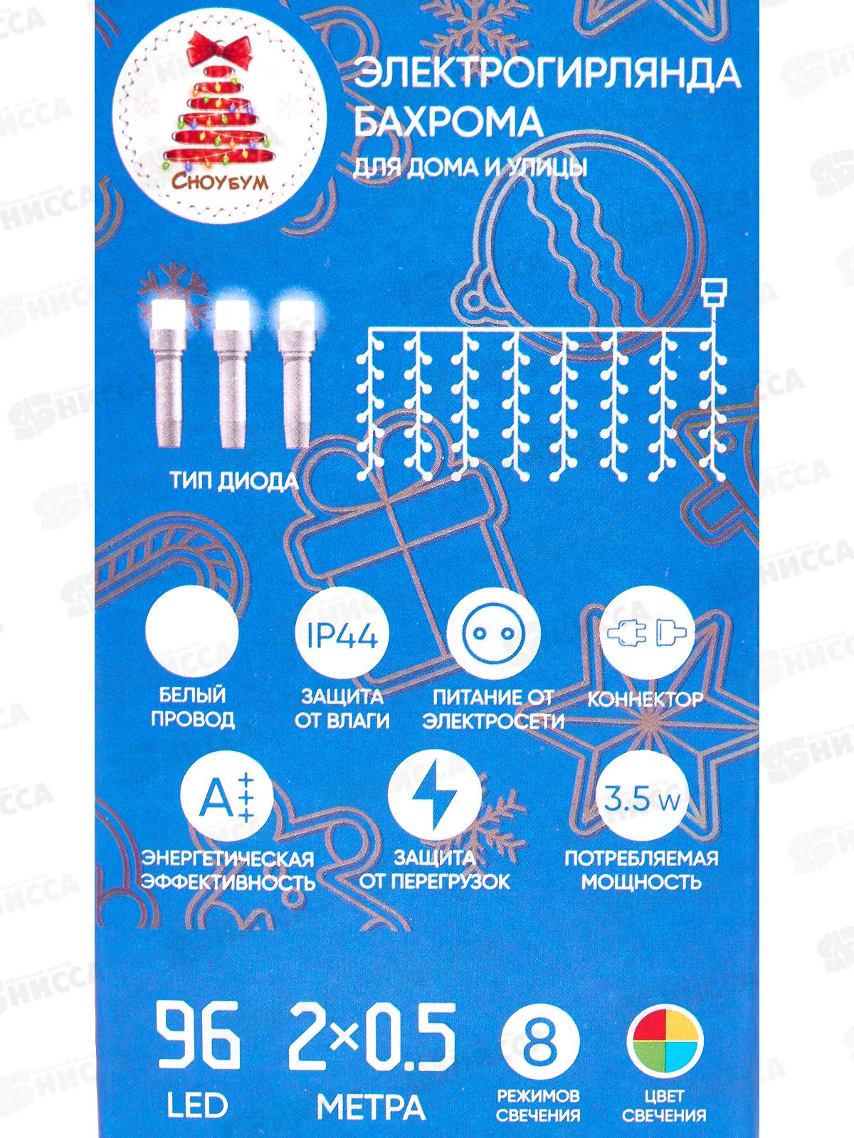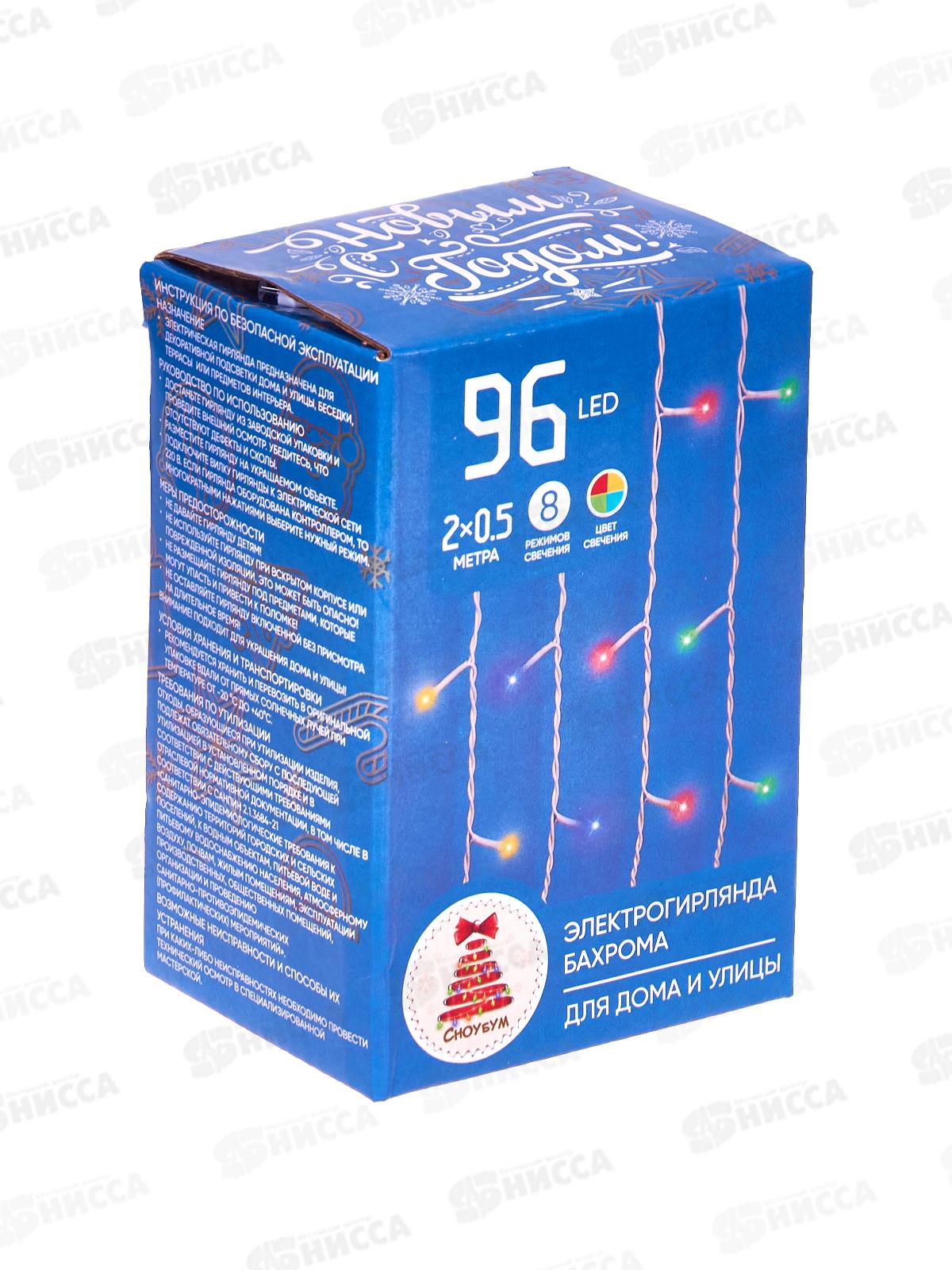 Гирлянда 2,0*0,5м электрическая Бахрома 96LED 16 нитей 8 режимов мультицвет 351-483 г