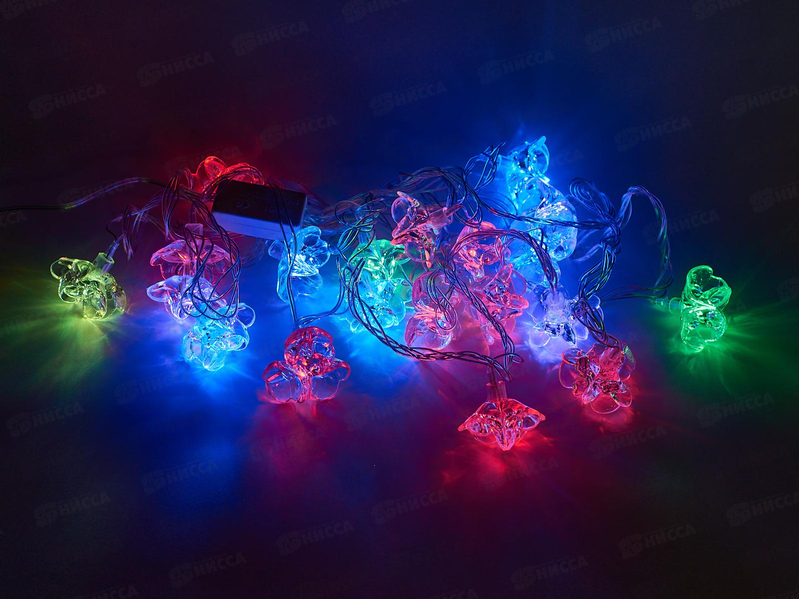 Гирлянда 4м, "Цветок", 20 светодиодов разноцветных, черный провод, AL-8610 *50